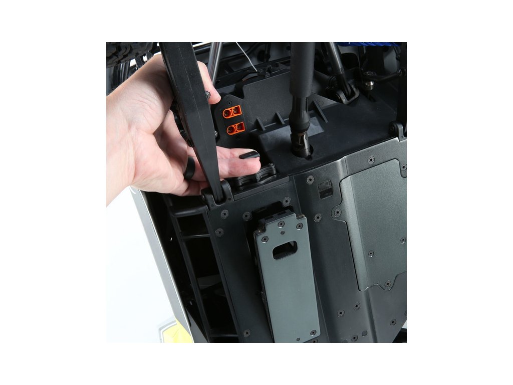 Inovativní systém přihrádky baterie ze spodní strany, umožňuje rychlou a snadnou výměnu baterie, bez nutnosti demontáže karoserie. V podvozku modelu stačí otevřít přihrádku, vložit baterii, připojit konektor a můžete vyrazit.