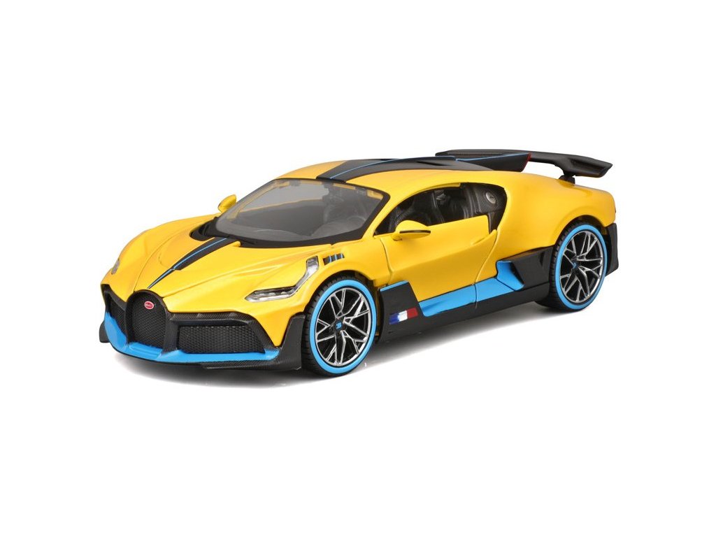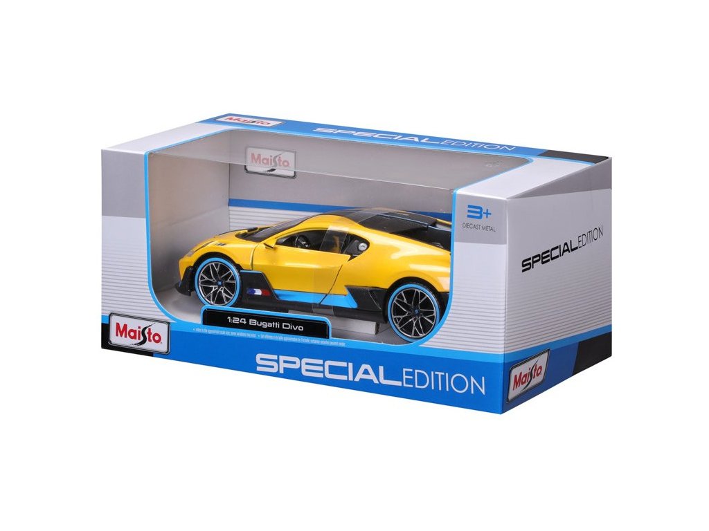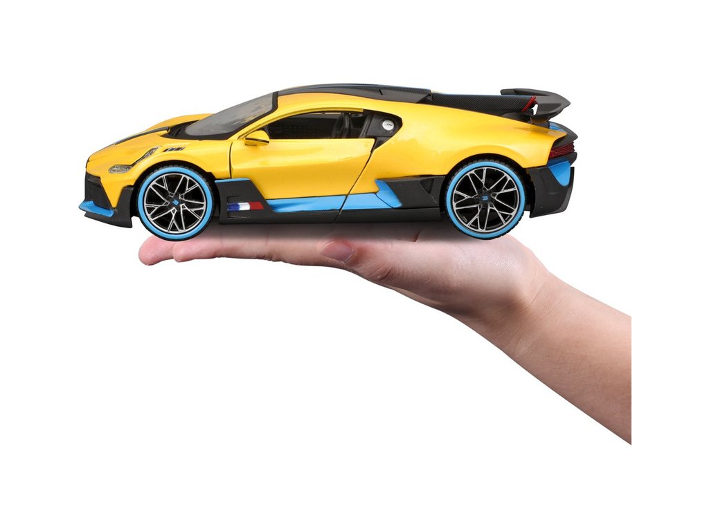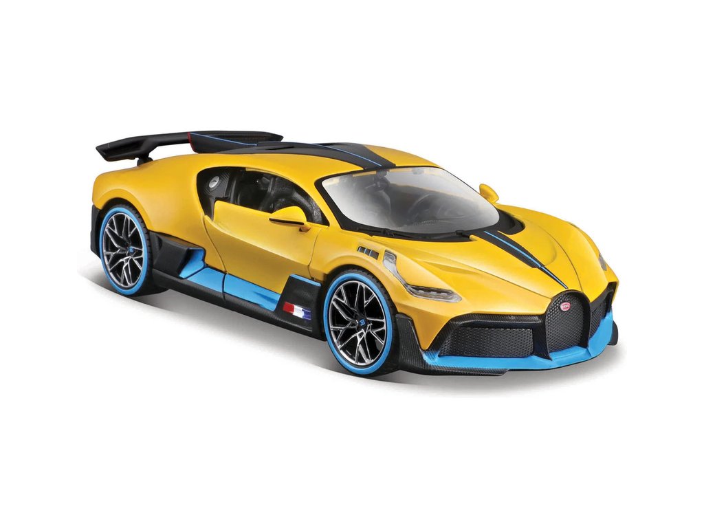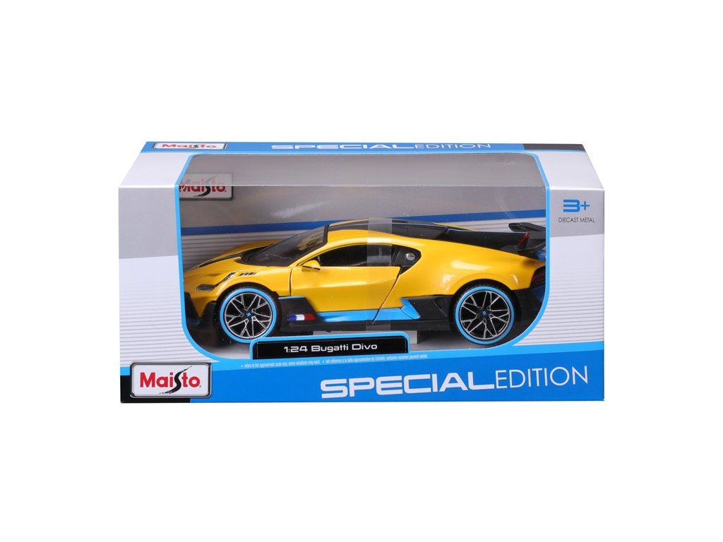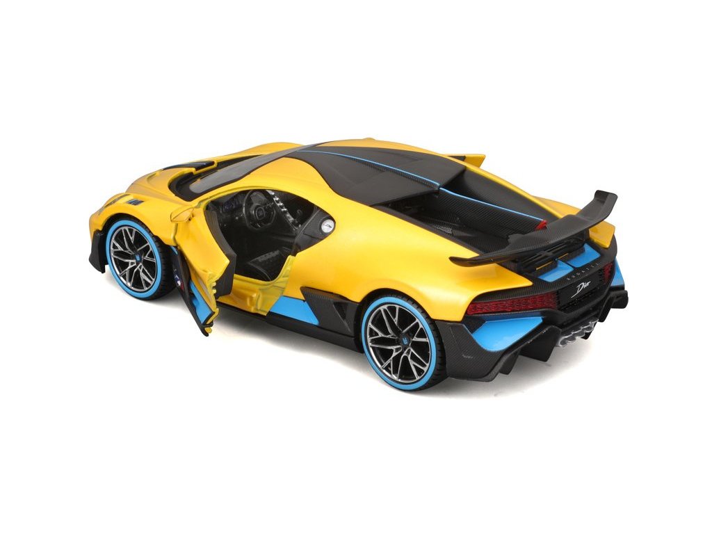 Kovový model auta 1:24 Maisto 31526Y Bugatti Divo nejen pro sběratele. Model je v detailním provedení a má otevíratelné dveře. Barva modelu je žlutá a je přibližně 17 cm velký.