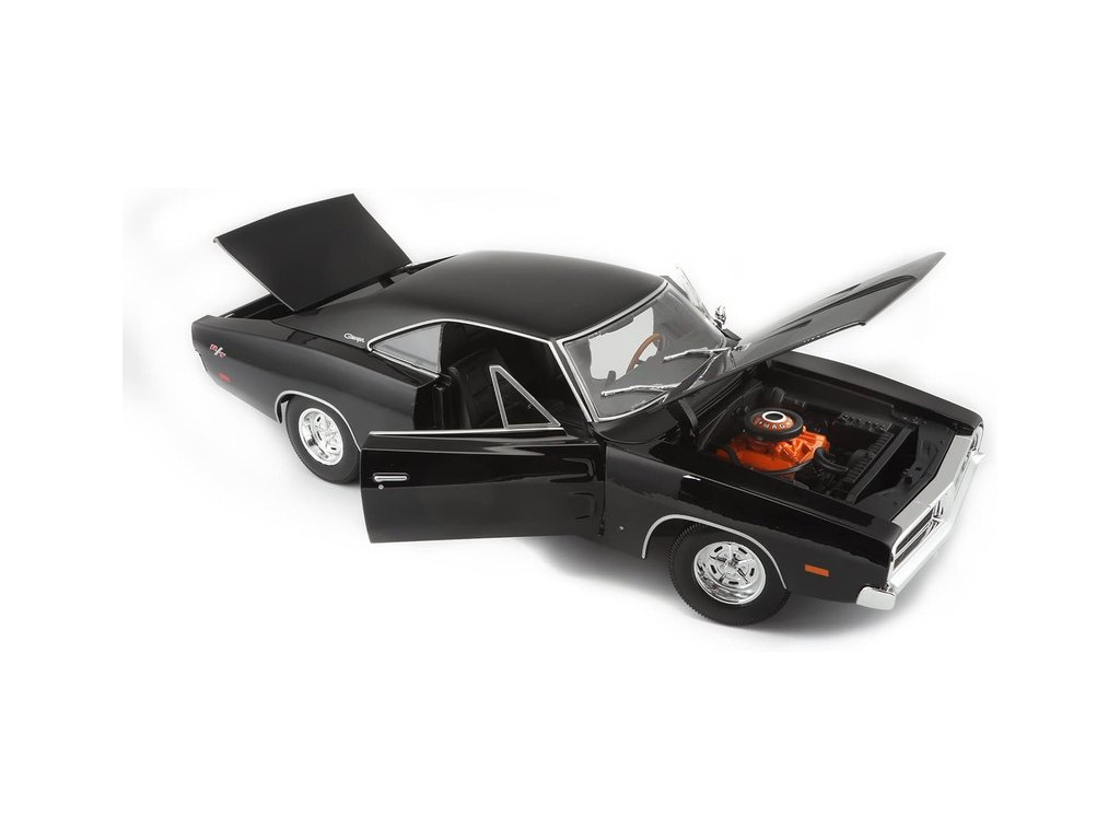 Kovový model auta Maisto Dodge Charger R/T 1969 v měřítku 1:18 nejen pro sběratele. Model je v detailním provedení a má otevíratelné dveře i kapoty. Barva modelu je černá a je přibližně 29cm dlouhý.