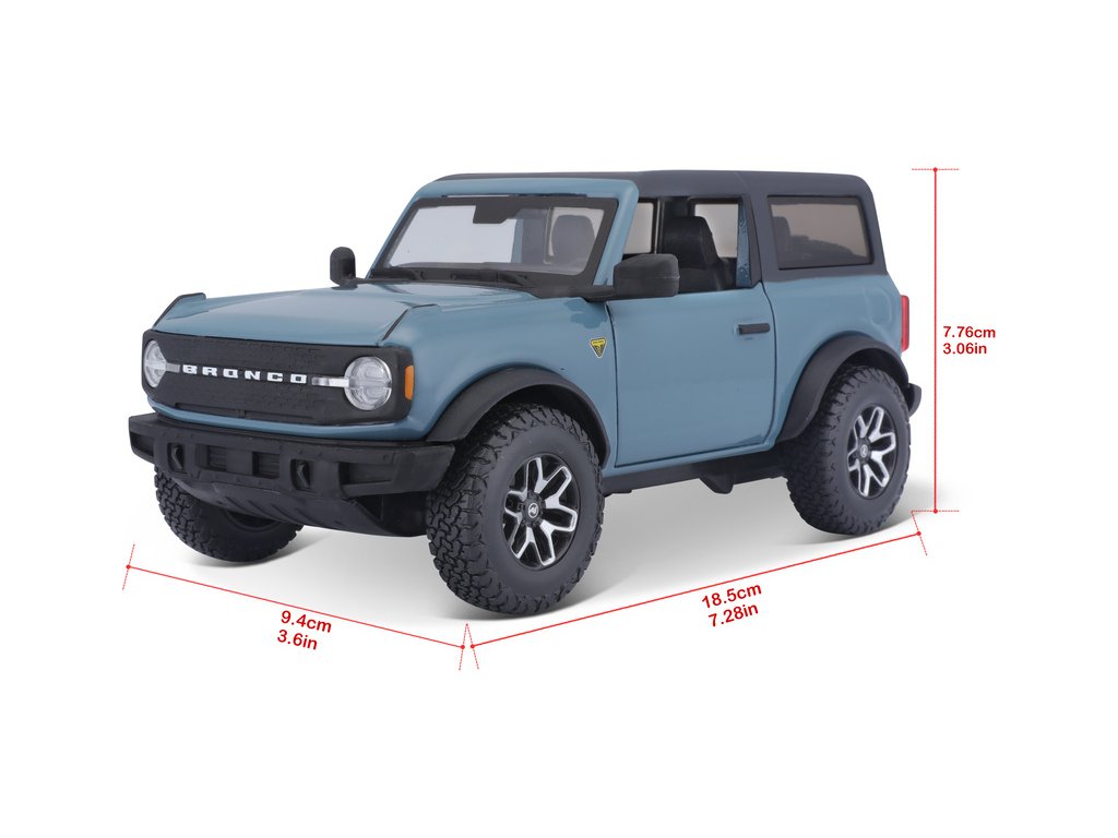 Kovový model auta 1:24 Maisto 31530 Ford Bronco 2021 nejen pro sběratele. Model je v detailním provedení. Barva modelu je modrá.