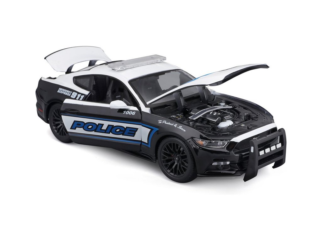 Kovový model Maisto 31397 Ford Mustang GT 2015 v měřítku 1:18 nejen pro sběratele. Detailní provedení, přívětivá cena, barva černo-bílá, délka přibližně 24 cm. U modelu lze otevřít dveře.