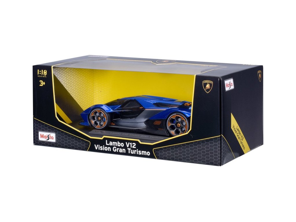 Kovový model auta 1:18 Maisto 36454 Lamborghini V12 Vision Gran Turismo nejen pro sběratele. Model je v detailním provedení na plastovém podstavci. Barva modelu je modrá.