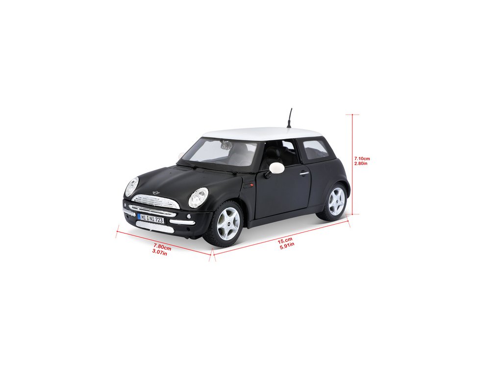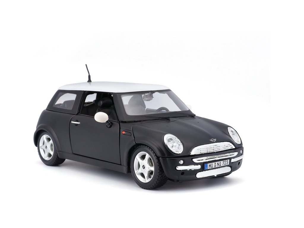 Kovový model auta 1:24 Maisto 31219 Mini Cooper nejen pro sběratele. Model je v detailním provedení a má otevíratelné dveře. Barva modelu je černá metalíza a je přibližně 17 cm velký.