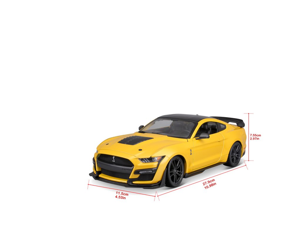 Kovový model auta Maisto 31452Y Mustang Shelby GT500 2020 žlutý, v měřítku 1:18 nejen pro sběratele. Model je v detailním provedení na plastovém podstavci. Barva modelu je žlutá a délka je přibližně 27cm.