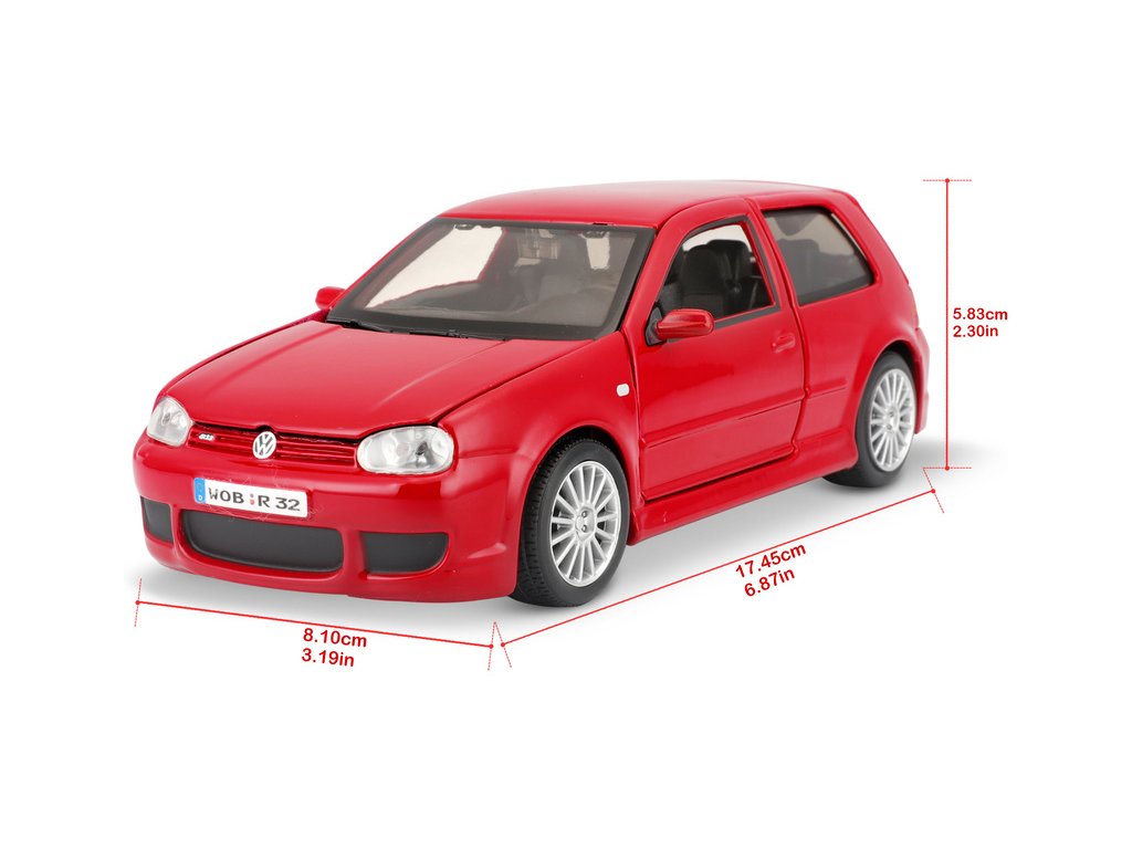 Kovový model auta 1:24 Maisto 31290 Volkswagen Golf R32 nejen pro sběratele. Model je v detailním provedení. Barva modelu je červená.