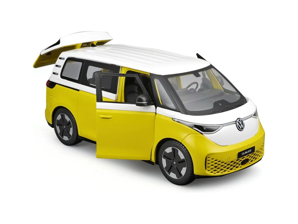 Kovový model auta 1:24 Maisto 32914Y Volkswagen ID.Buzz 2023 nejen pro sběratele. Model je v detailním provedení a má otevíratelné dveře. Barva modelu je žlutá metalíza a je přibližně 17 cm velký.