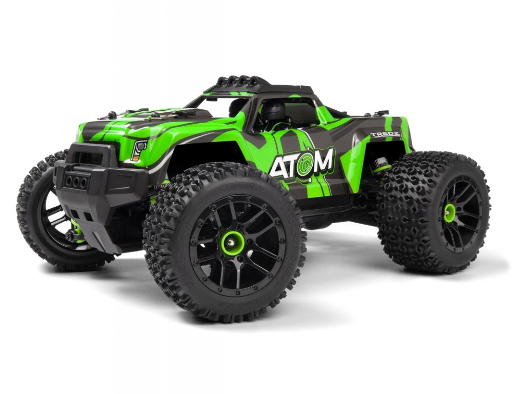 Základnu monster trucku ATOM tvoří lehká a pevná konstrukce podvozku s šestiúhelníkovým vystužením. Boční nárazové lišty chrání spodní okraj karoserie. Všechny čtyři tlumiče mají závity, umožňující snadné nastavení světlé výšky.