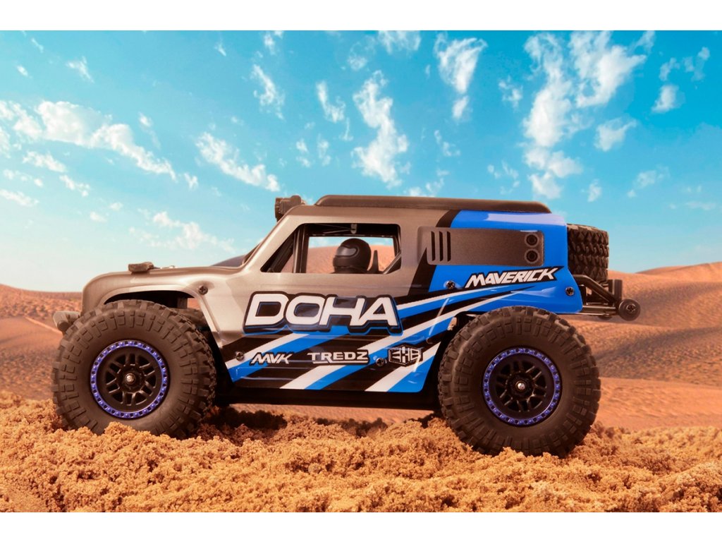 DOHA má odolný hřídelový pohon a planetové diferenciály, které zajišťují optimální rozdělení výkonu pro výjimečnou stabilitu a přesné řízení v různých terénech. Jeho zesílená konstrukce spolu s originální potištěnou výklopnou karoserií Desert truck nejen zvyšuje jeho vizuální přitažlivost, ale také umožňuje snadný přístup k pohonnému akumulátoru. Model DOHA je k dispozici ve čtyřech výrazných barevných variantách.