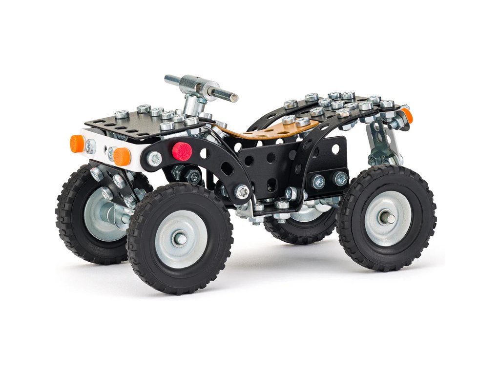 Klasická česká stavebnice Merkur - Čtyřkolka. V balení najdete podrobný návod, Merkur sadu nářadí a unikátní Merkur díly. Merkur díly jsou univerzální a tak vás neomezí v jakékoli modifikaci a nápadu. Stavebnici tak můžete sestavit podle návodu nebo podle svých představ.
