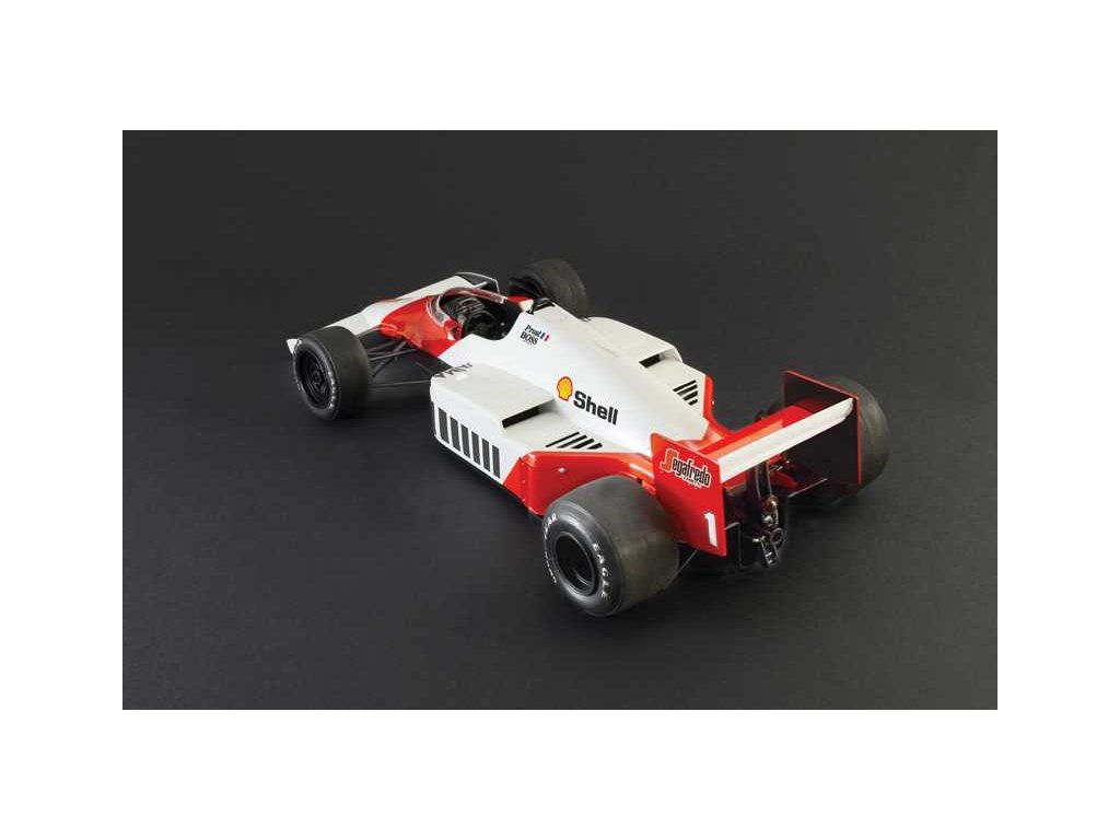 Detailní zavěšení – Vysoce detailní motor – Gumové pneumatiky – Díly z fotoleptaného kovu – Odnímatelné části karoserie - 2 listy s novými obtisky: List A - Exteriér, kokpit a motor. List B – kompozitní materiály – Obtisky pro 2 verze: Mistrovství světa 1986 #1 Alain Prost - Mistrovství světa 1986 #2 Keke Rosberg