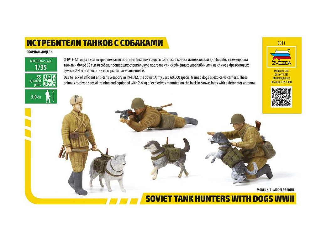 Model Kit figurky 3611 - Soviet Tank Hunters with dogs (1:35)