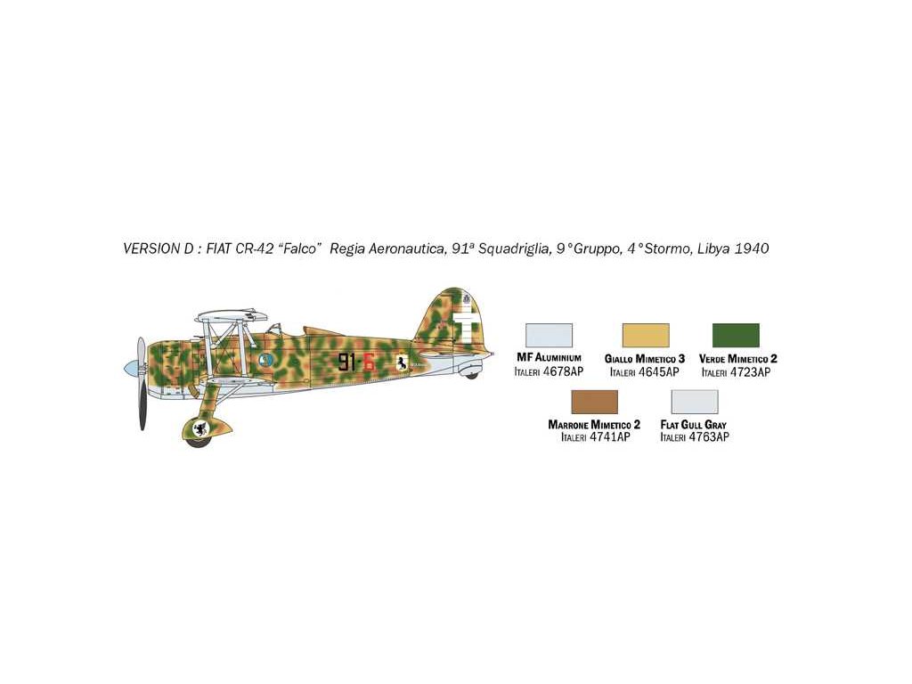Vycházejíc z úspěchu C.R. 32 „Freccia“, který se dobře osvědčil velkou spolehlivostí a operační účinností během španělské občanské války, vyvinul italský výrobce Fiat koncem 30. let model C.R. 42 "Falco". Nový stíhací dvouplošník s jedním sedadlem měl – stejně jako jeho předchůdce - pevný podvozek a otevřenou kabinu, ale byl vybaven důležitými inovacemi, jako byl slitinový a ocelový rám pokrytý plátnem a kovovým obložením. Díky přeplňovanému, vzduchem chlazenému hvězdicovému motoru Fiat A.74 dokázal dosáhnout rychlosti 400 km/h. Vynikal mimořádnou ovladatelností, kterou italští piloti velmi oceňovali, ale brzdily ho limity jeho dvouplošné konstrukce. Dokázal tak úspěšně čelit strojům jako Gloster Gladiator, ale brzy ho předčily rychlejší a těžce ozbrojené jednoplošníky jako Hawker Hurricane a Supermarine Spitfire. Několik Fiatů C.R. 42, spolu se stíhači G.50 a BR.20, bombardéry CANT Z 1007 použila italská Regia Aeronautica také během bitvy o Británii jako součást „Corpo Aereo Italiano“.