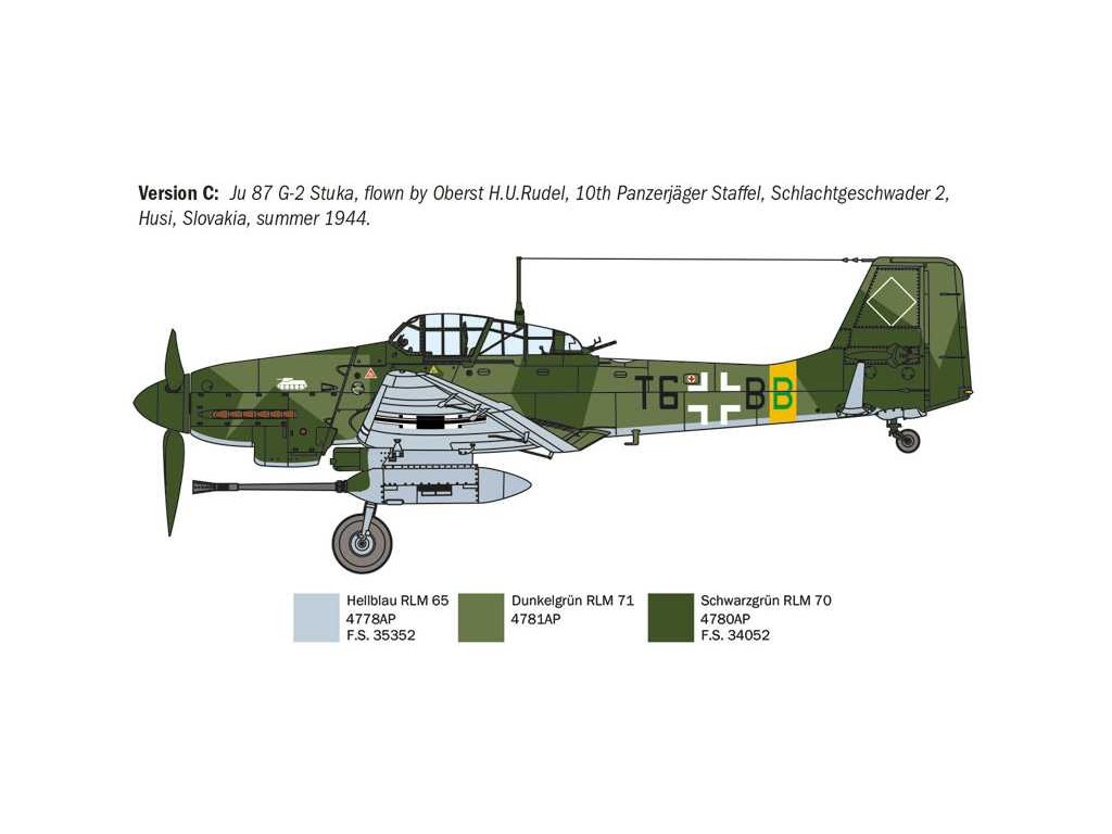 Střemhlavý bombardér JU-87 je jistě jedním z nejznámějších letadel 2. světové války. Charakteristický letoun s "racčím křídlem" se na počátku války značně (neblaze) proslavil a spolu s obrněnými divizemi Wehrmachtu je považován za jeden z určujících symbolů Blitzkriegu. V průběhu války vznikly nové verze s odlišnými operačními profily. Konkrétně Ju-87G byla vyvinuta jako "protitanková" verze Stuky, která měla čelit rozsáhlým šikům nepřátelských obrněných vozidel zapojených do bojů na východní frontě po roce 1943. Hans Ulrich Rudel, "eso" létající na Stukách, přišel s návrhem přidat dvojici 37mm kanonů Flak 18, které byly instalovány do podkřídelních gondol, aby bylo možné lépe čelit této rostoucí hrozbě. V této konfiguraci se Ju-87G "Kanonenvogel" v rukou zkušených pilotů ukázal jako mimořádně účinná zbraň. Ještě dokonalejší byla verze G-2, která se vyznačovala většími křídelními plochami, odvozenými zase z předchozí verze D-5.