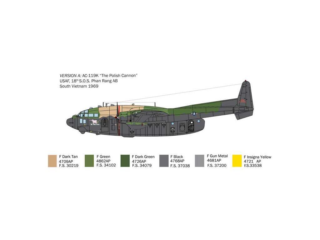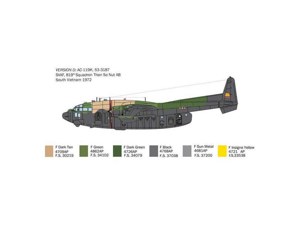 Těžký dopravní letoun Fairchild C-119 posloužil americkému letectvu jako základ pro přestavbu na letadlo palebné podpory. Tato speciální konstrukce se používala zejména ve Vietnamu pro noční mise proti zásobovacím liniím a shromaždištím vojsk Vietkongu. Verze AC-119 K byla díky dvěma 20mm kanónům a čtyřem 7,62mm minikanónům účinná zejména proti nákladním automobilům. Další verze, AC-119 G, měla lehčí výzbroj. Kromě toho dostala ještě dva přídavné proudové motory, aby mohla startovat z krátkých vzletových drah i s plnou náloží munice. Od příchodu výkonnějších AC-130H byly tyto letouny postupně předávány do rukou jihovietnamského letectva, které je používalo až do pádu saigonské vlády.