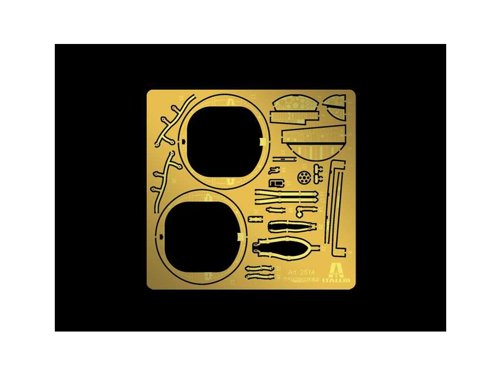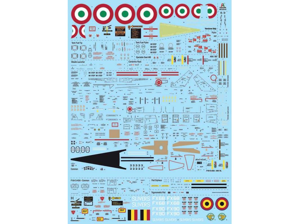 GONDOLA S PRŮZKUMNÝM SYSTÉMEM ORPHEUS ITALSKÉHO LETECTVA – VYPOUKLÝ KRYT PRŮZKUMNÉHO FOTOGRAFICKÉHO SYSTÉMU - 2 VÝMETNICE KOVOVÝCH PROUŽKŮ ALE 40 – DETAILNĚ TVAROVANÉ SPOJE PANELŮ A NÝTOVÁNÍ PLÁŠTĚ – DETAILNĚ ZPRACOVANÝ MOTOR, PILOTNÍ KABINA A ŠACHTA S AVIONIKOU – DETAILNĚ ZPRACOVANÁ DĚLOVÁ ŠACHTA S KOMPLETNÍM MECHANISMEM ROTAČNÍHO KANÓNU M-61 VULCAN – OTEVŘENÉ NEBO SKLOPENÉ VZDUCHOVÉ BRZDY – DÍLY Z FOTOLEPTANÉHO KOVU - 325 DÍLŮ - 2 OBROVSKÉ ARCHY S OBTISKY PRO 8 VERZÍ – NÁVOD NA SESTAVENÍ I S BAREVNÝMI SCHÉMATY