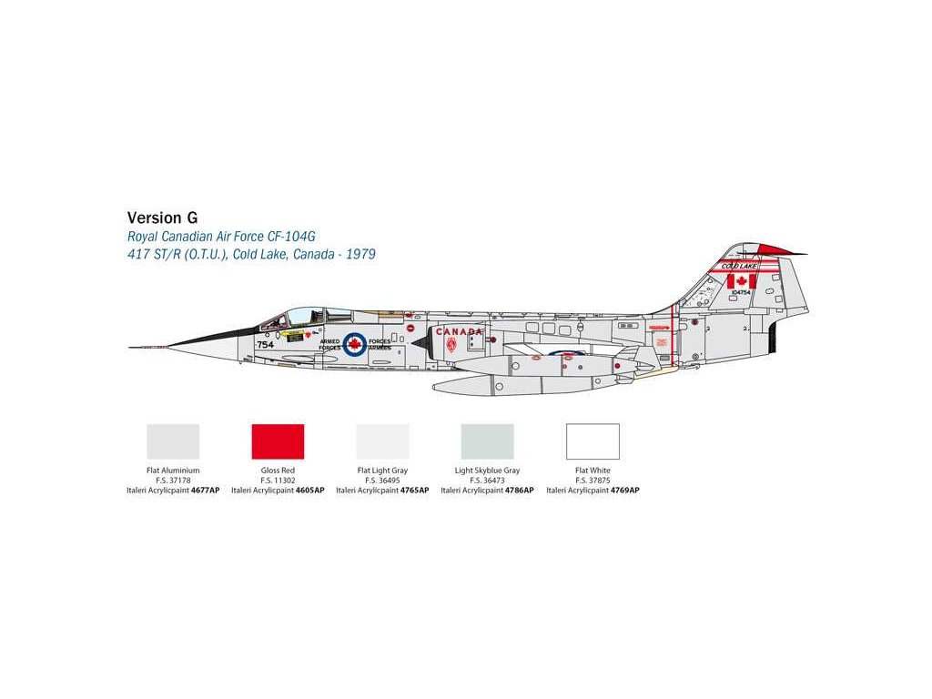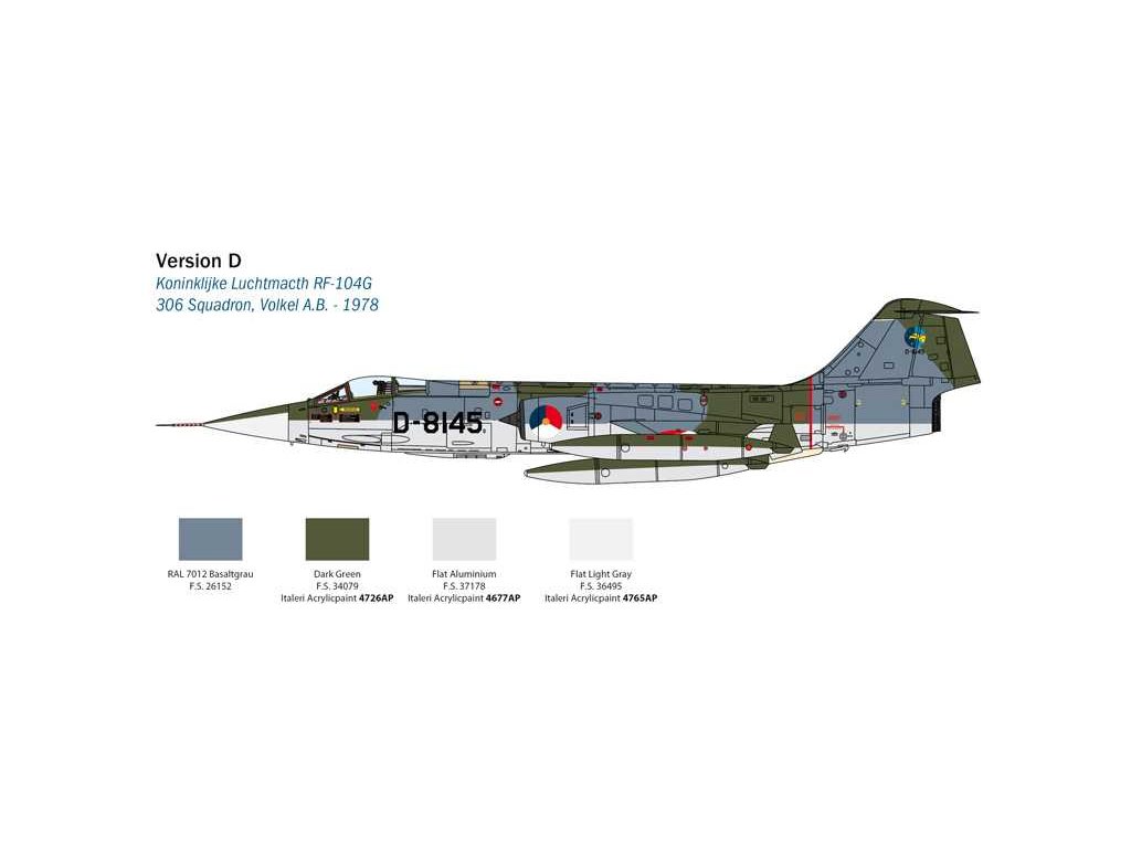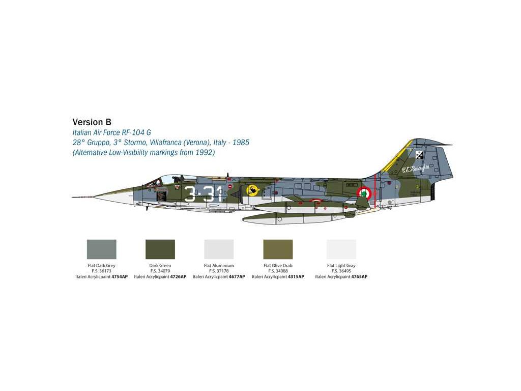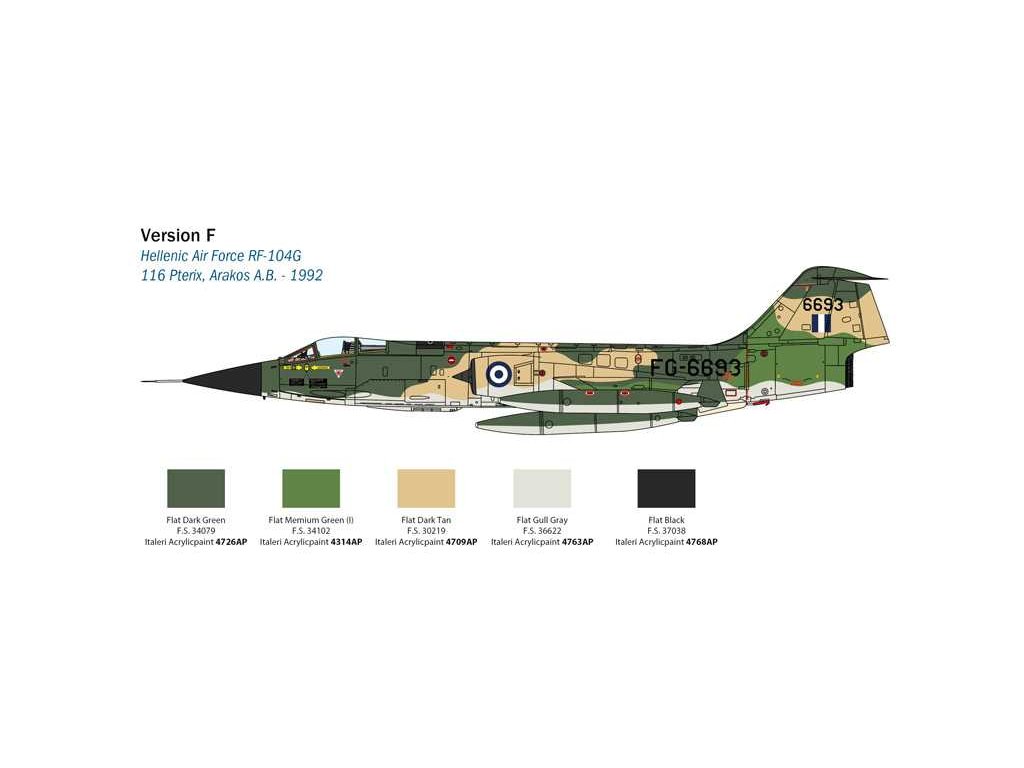 Lockheed F-104 Starfighter je jedním z nejslavnějších stíhacích letounů v dějinách letectví a také jedním ze strojů s nejdelší operační kariérou: ta se začala psát na konci 50. let a v případě některých vzdušných sil skončila až v polovině první dekády po roce 2000. Jeho jedinečný drak se štíhlým trupem a velmi malou plochou křídel z tohoto letounu učinil ideální záchytnou stíhačku. Díky tahu jeho turboreaktivního motoru General Electric J79-GE-11A s přídavným spalováním dokázal překročit rychlost 2,2 Machu a disponoval vynikající stoupavostí. Z toho důvodu naopak nebyl příliš dobře ovladatelný a těžko se pilotoval. Verzi F-104G Starfighter vyrábělo pod licencí hned několik evropských leteckých konstruktérů. Od poloviny 60. let se stala standardním záchytným letounem mnoha států NATO včetně Itálie, Německa, Nizozemska, Řecka a Turecka. Její výzbroj se v podstatě nelišila od předchozích verzí. Hlavní zbraní byl 20mm kanón Vulcan a pod křídla bylo dále možné zavěsit střely typu vzduch-vzduch, bomby i přídavné palivové nádrže pro zvětšení doletu letadla. Postupem času se začal tento stroj používat kromě záchytných úkolů také pro průzkumné mise. Z toho důvodu byl vybaven dedikovaným průzkumným systémem “Orpheus” umístěným ve vnější gondole, který přinášel výborné operační výsledky.