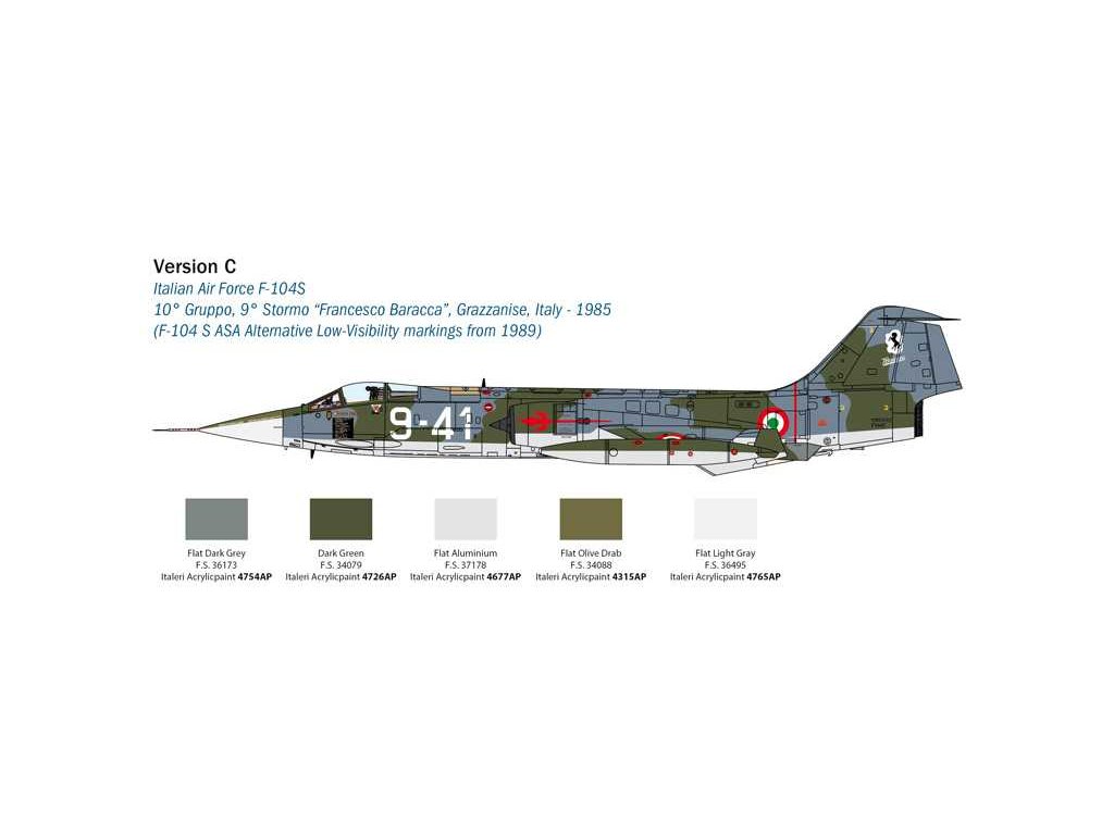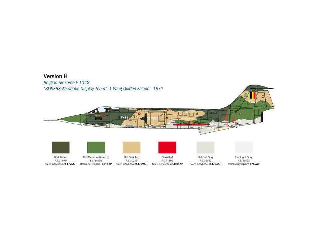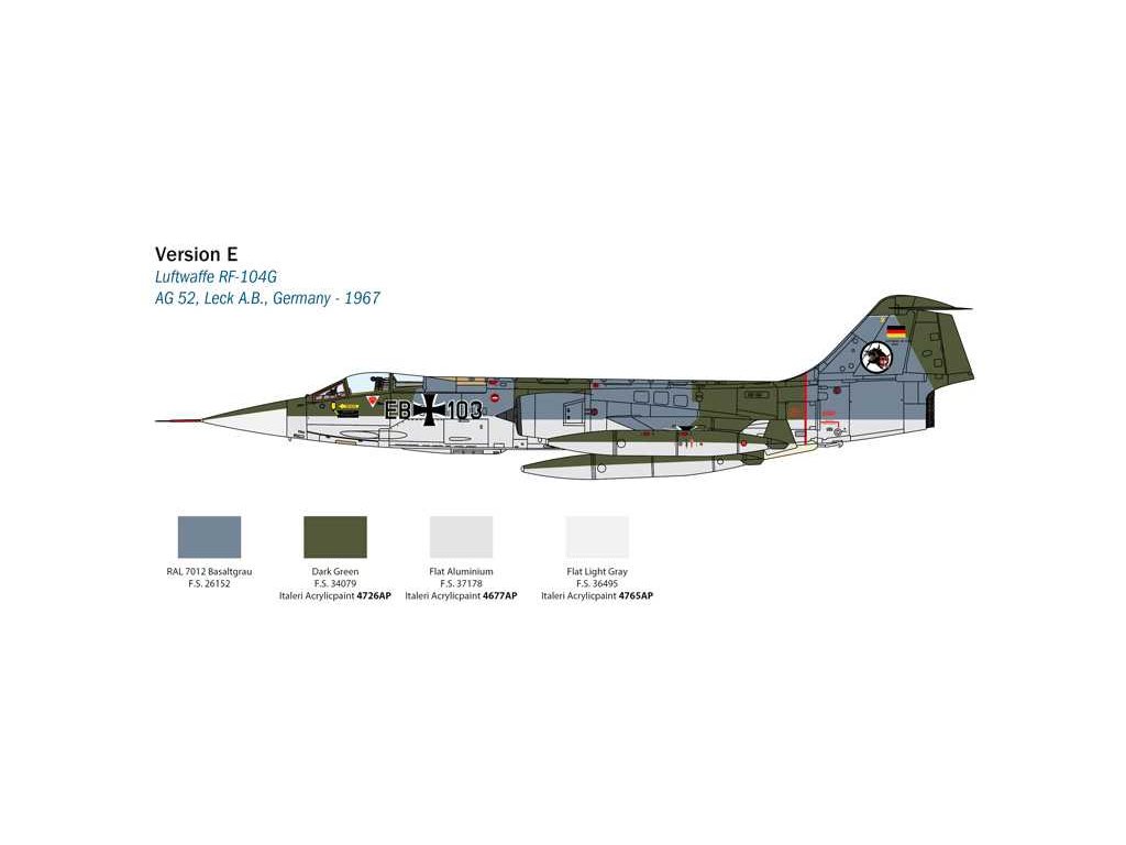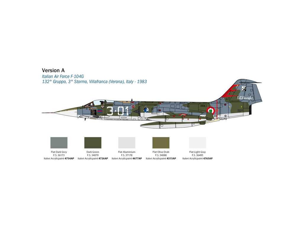 Lockheed F-104 Starfighter je jedním z nejslavnějších stíhacích letounů v dějinách letectví a také jedním ze strojů s nejdelší operační kariérou: ta se začala psát na konci 50. let a v případě některých vzdušných sil skončila až v polovině první dekády po roce 2000. Jeho jedinečný drak se štíhlým trupem a velmi malou plochou křídel z tohoto letounu učinil ideální záchytnou stíhačku. Díky tahu jeho turboreaktivního motoru General Electric J79-GE-11A s přídavným spalováním dokázal překročit rychlost 2,2 Machu a disponoval vynikající stoupavostí. Z toho důvodu naopak nebyl příliš dobře ovladatelný a těžko se pilotoval. Verzi F-104G Starfighter vyrábělo pod licencí hned několik evropských leteckých konstruktérů. Od poloviny 60. let se stala standardním záchytným letounem mnoha států NATO včetně Itálie, Německa, Nizozemska, Řecka a Turecka. Její výzbroj se v podstatě nelišila od předchozích verzí. Hlavní zbraní byl 20mm kanón Vulcan a pod křídla bylo dále možné zavěsit střely typu vzduch-vzduch, bomby i přídavné palivové nádrže pro zvětšení doletu letadla. Postupem času se začal tento stroj používat kromě záchytných úkolů také pro průzkumné mise. Z toho důvodu byl vybaven dedikovaným průzkumným systémem “Orpheus” umístěným ve vnější gondole, který přinášel výborné operační výsledky.