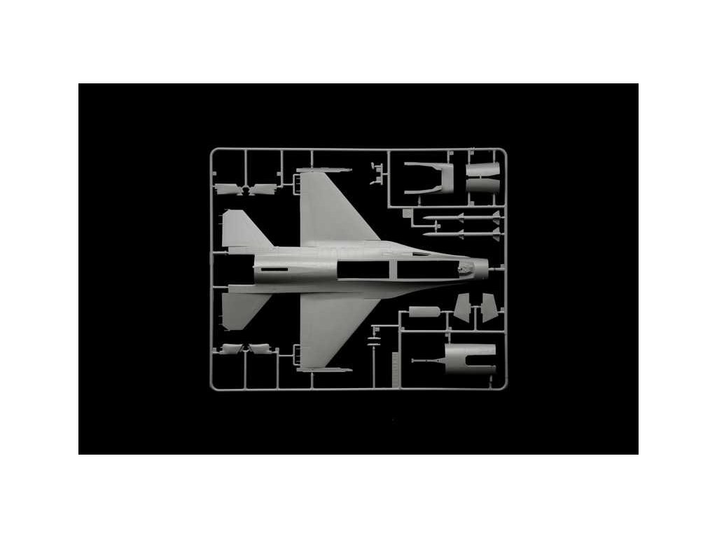 Stíhačka F-16 Fighting Falcon, vyráběná americkou společností General Dynamics od konce 70. let, je skutečnou ikonou historie vojenského letectví. Původně byla vyvinuta na základě potřeb letectva Spojených států jako moderní a účinný jednomístný denní stíhací letoun pro získávání vzdušné převahy. Projekt se však postupně vyvíjel a dal vzniknout víceúčelovému letounu do každého počasí disponujícímu mimořádnou operační flexibilitou. F-16 se vyznačuje originálním designem snadno rozpoznatelným podle bezrámového bublinového krytu kabiny, který pilotovi zaručuje skvělý výhled. Kromě toho dostala inovativní řešení, jako je knipl umístěný na straně, systém řízení "fly-by-wire" a moderní avionika, která zlepšila její letové a bojové schopnosti. "Fighting Falcon" piloti oceňují zejména pro jeho skvělou manévrovatelnost a spolehlivost. Je vyzbrojen 20mm zabudovaným kanónem M61 Vulcan. Mimo to může díky svým pylonům nést také obrovskou škálu útočných zbraní jako rakety a bomby. F-16 si do výzbroje pořídilo mnoho vzdušných sil po celém světě a své využití našla, často s velkou účinností, v řadě operačních oblastí.