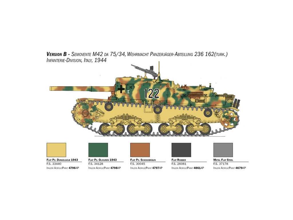 Na konci 30. let 20. století začala italská Regio Esercito (Královská italská armáda) nasazovat samohybné dělostřelecké kanóny na podporu tanků a pěších jednotek. „Semovente“ 75/18 byl vyvinut na korbě středního tanku řady „M“ a brzy se stal nejobávanějším italským obrněným vozidlem. Kromě své primární dělostřelecké role se 75mm houfnice instalovaná v kasematě ukázala jako vysoce účinná protitanková zbraň, schopná zničit i ty nejsilnější a nejtěžce obrněné britské a americké tanky. Během války však italská Regio Esercito požádala o vývoj verze se zvýšenou útočnou schopností. Kanón 75/34, který byl původně navržen pro protitankovou roli, byl namontován na korbu samohybného tanku M42. První jednotky byly na jaře 1943 distribuovány italské armádě. Díky své efektivní operační výkonnosti byly po příměří v září 1943 používány také německými protitankovými prapory.