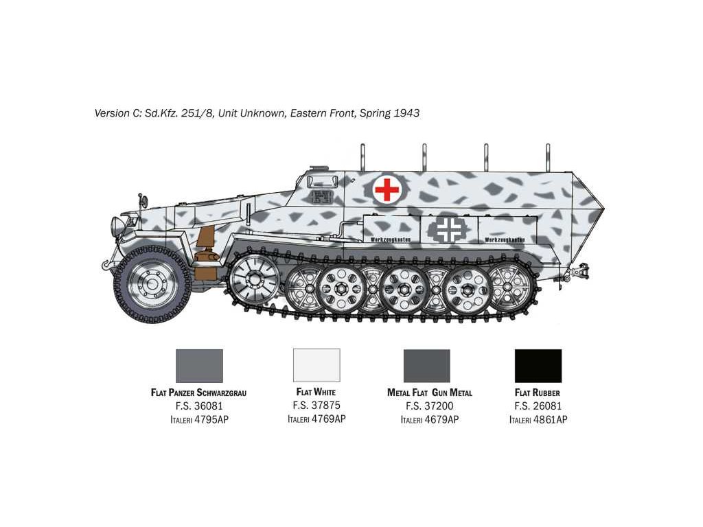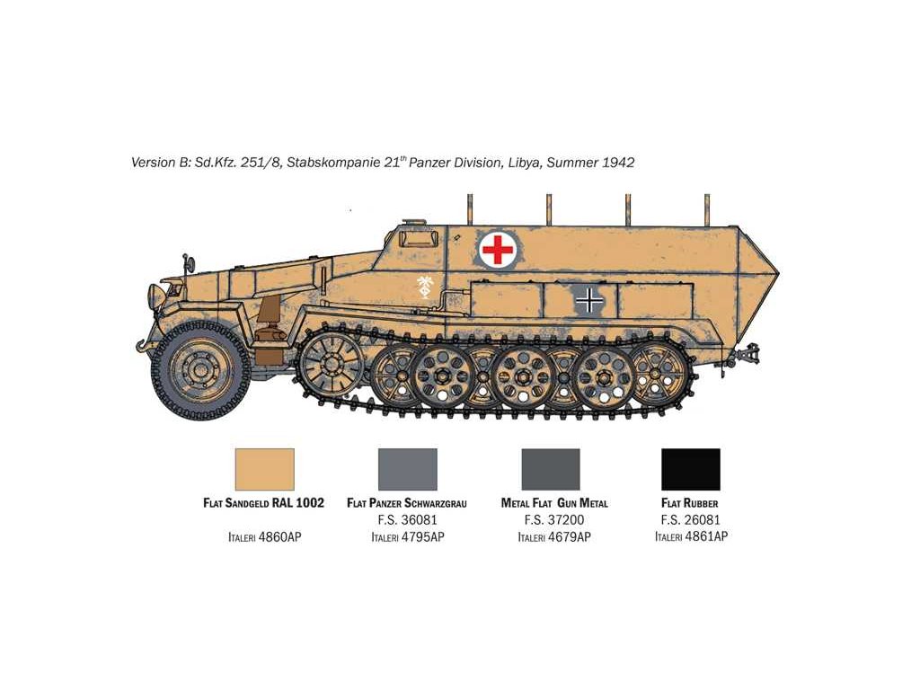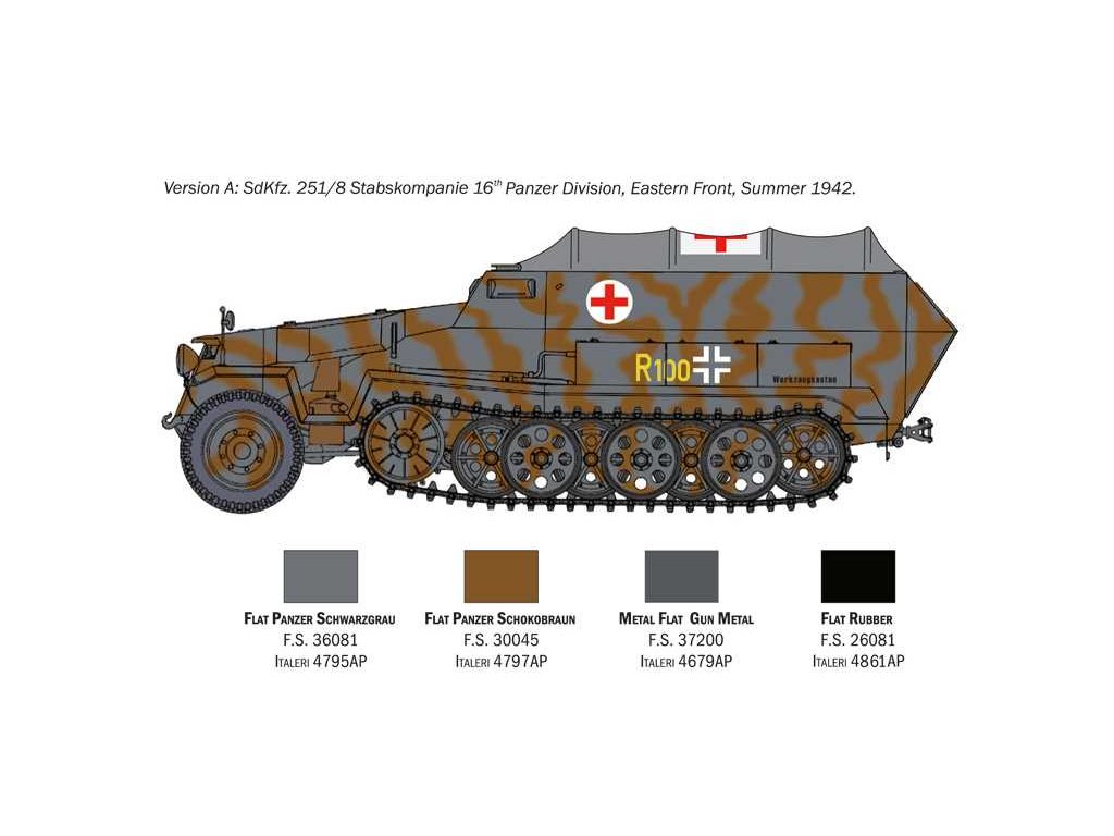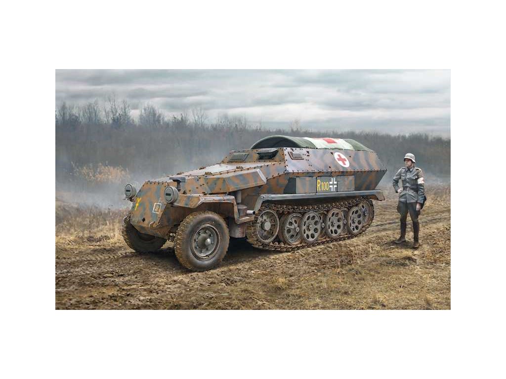 Polopásový stroj Sd.Kfz.251 bylo obrněné bojové vozidlo, které Wehrmacht za druhé světové války nasazoval na všech bojových frontách. Jako pohonnou jednotku využíval šestiválcový benzínový motor Maybach, díky kterému dokázal dosáhnout rychlosti 55 km/h dokonce i v terénu. Vyráběl se v obrovském množství a používal se hlavně k přepravě „Panzergrenadiers“. Během války však vzniklo několik verzí, které dokázaly splnit různé další operační požadavky. Verze Sd.Kfz. 251/8 „Krankenpanzerwagen“ byla vybavena a používána blízko frontové linie jako obrněná ambulance. Uvézt mohla až osm sedících raněných nebo čtyři sedící a dva ležící raněné na nosítkách spolu s potřebným vybavením pro poskytnutí první pomoci a dalším lékařským příslušenstvím.