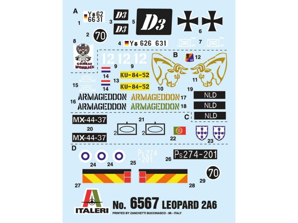 Barevné schéma (Doporučené barvy Italeri):