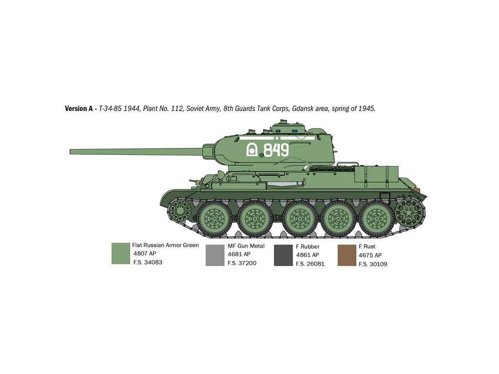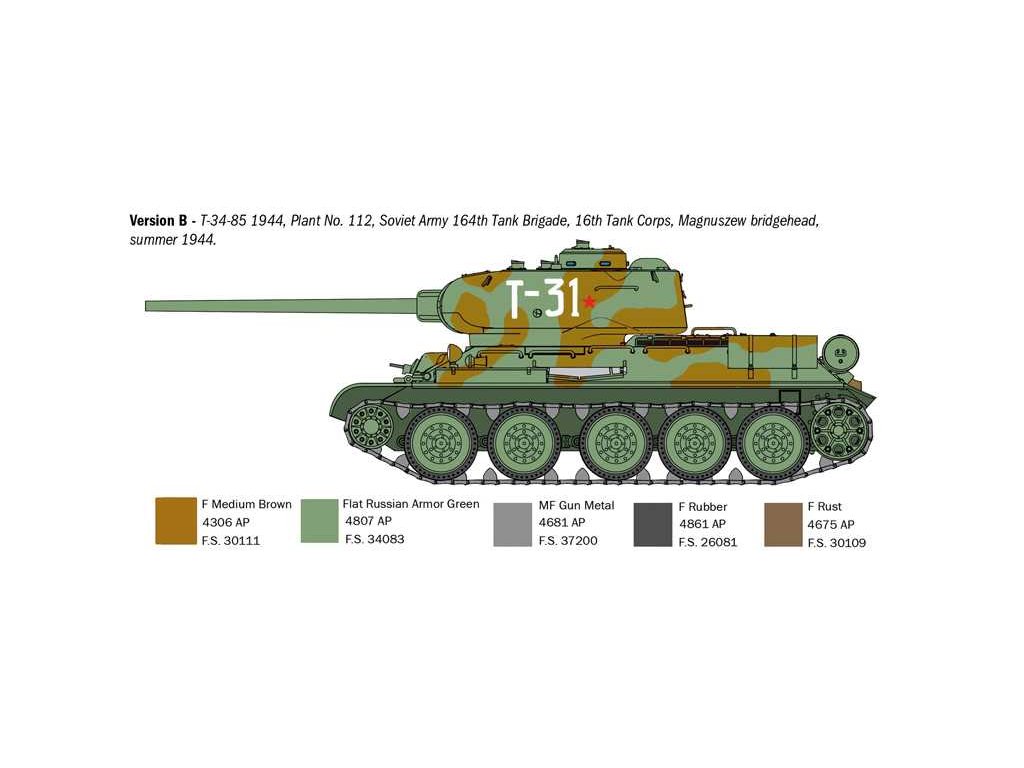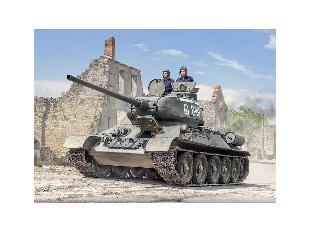 Tank T-34 je nepochybně jedním z nejikoničtějších obrněných vozidel druhé světové války a během konfliktu sloužil jako páteř sovětských ozbrojených sil. Mezi hlavní inovace, které T-34 zavedl, patřil zkosený čelní pancíř, který poskytoval větší ochranu před palbou, a použití širokých pásů, ideálních pro dosažení dobré mobility ve všech typech terénu. První tanky T-34, vybavené krátkohlavňovým 76mm kanónem, rychle získaly operační výhodu oproti nejběžnějším německým tankům té doby, jako byly Panzer III a Panzer IV. V roce 1943 byl T-34 dále vylepšen zavedením zcela nové věže s tlustším pancéřováním, která byla schopna pojmout dlouhohlavňový 85mm kanón. S nasazením prvních tanků T-34/85 u obrněných jednotek se sovětské armády mohly rovnat i těm nejmodernějším a nejúčinnějším německým tankům, jako byly Tiger a Panther.