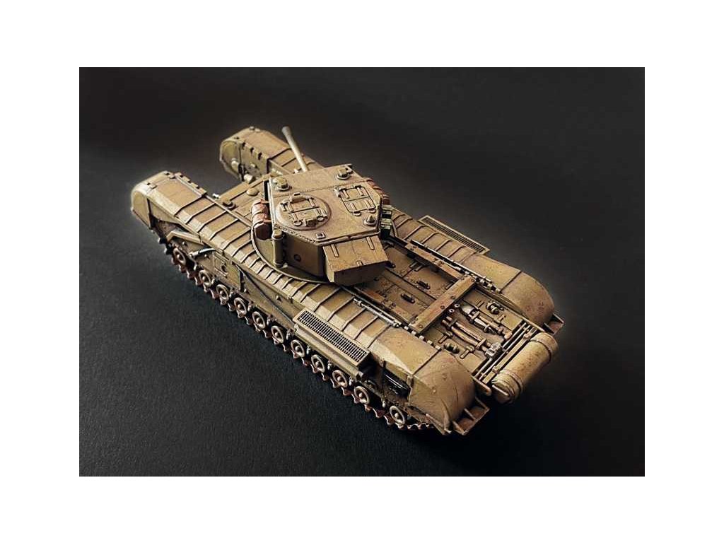 Střední tank Churchill byl nasazen do služby u britské armády v roce 1942, aby podpořil a nahradil dřívější Valentiny, Matildy a Crusadery. Tyto tanky byly v té době již zastaralé a nevhodné z hlediska pancéřování i výzbroje a snadno se stávaly obětí pokročilejších německých tanků. Tank Churchill byl vybaven silným pancéřováním a spolehlivým motorem, a osvědčil se pro svoji houževnatost a spolehlivost. Později se vyráběl i v dalších efektivnějších upgradovaných verzích. Jeho podvozek byl také používán jako platforma pro specializovaná podpůrná vozidla, jako je odminovací komplet, mobilní most a plamenomet.