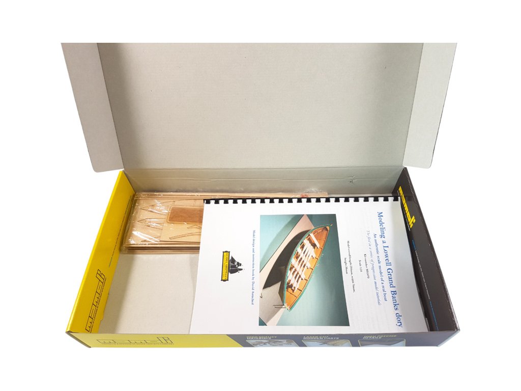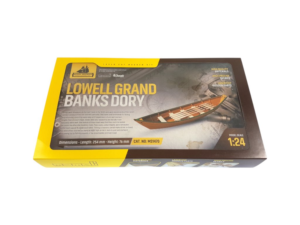 Stavebnice neplovoucího modelu lodi Lowell Grand Banks Dory v měřítku 1:24, délky 254 mm. Stavebnice využívá kvalitní lipové dřevo řezané laserem. Stavbou Vás provedou stavební plány a návod s mnoha detailními fotografiemi.