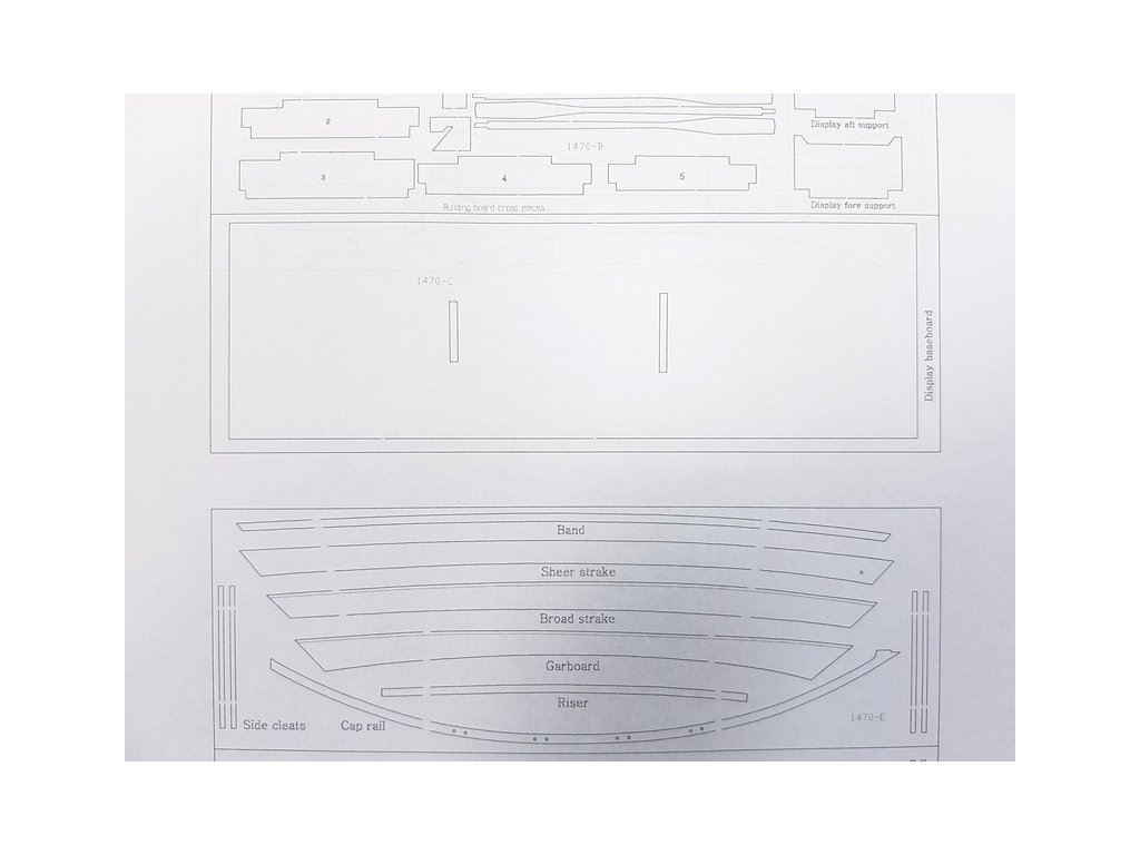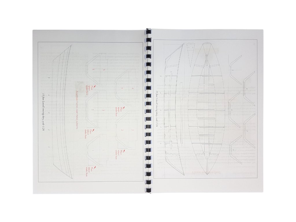 Součástí balení stavebnice statického modelu lodi Model Shipways Lowell Grand Banks Dory 1:24, jsou stavební výkresy modelu, manuál, sada překližkových laserem řezaných dílů, lišty a lano.