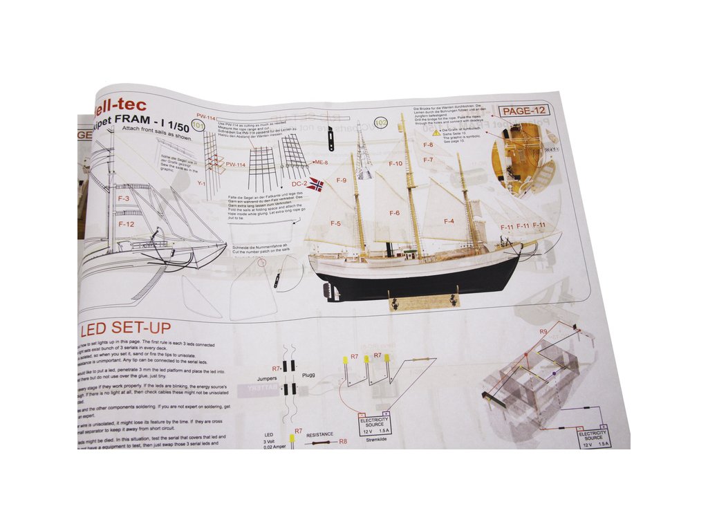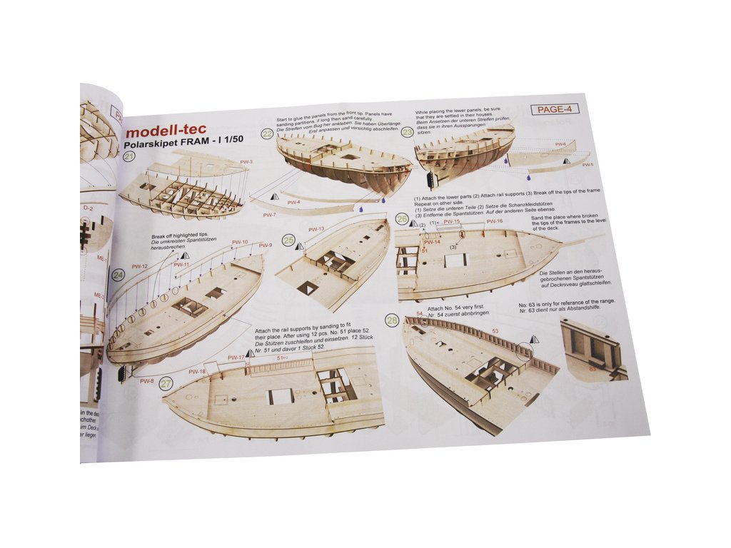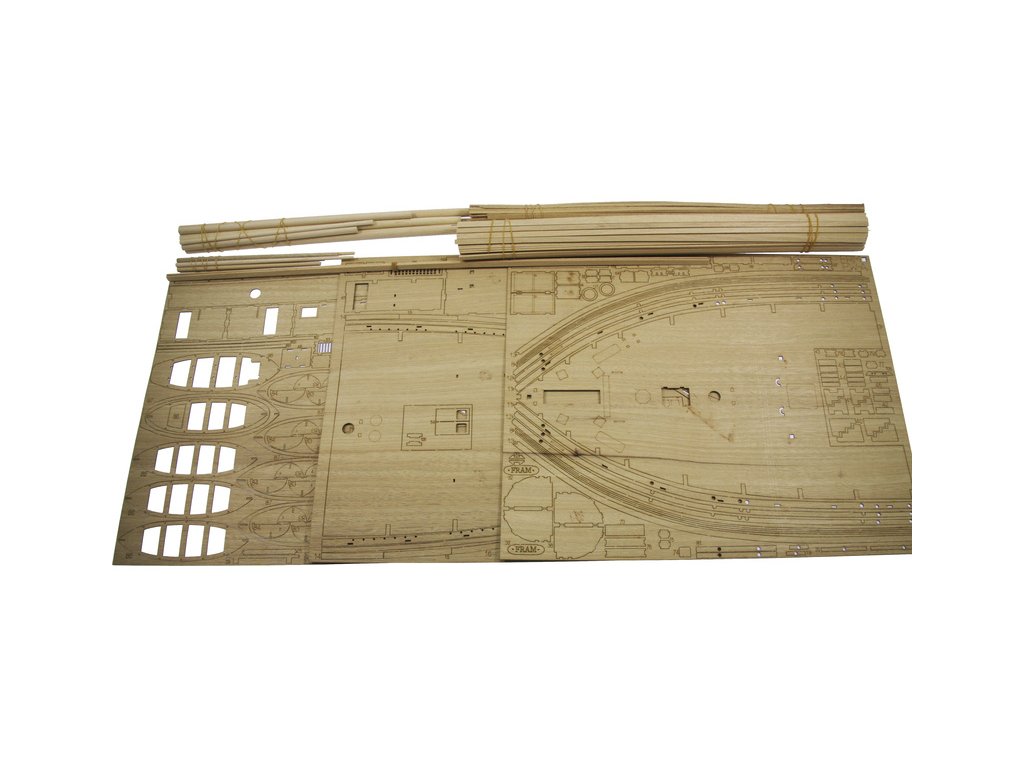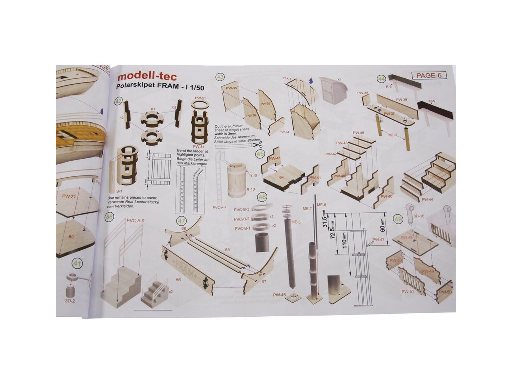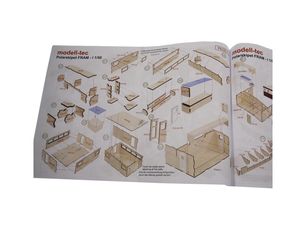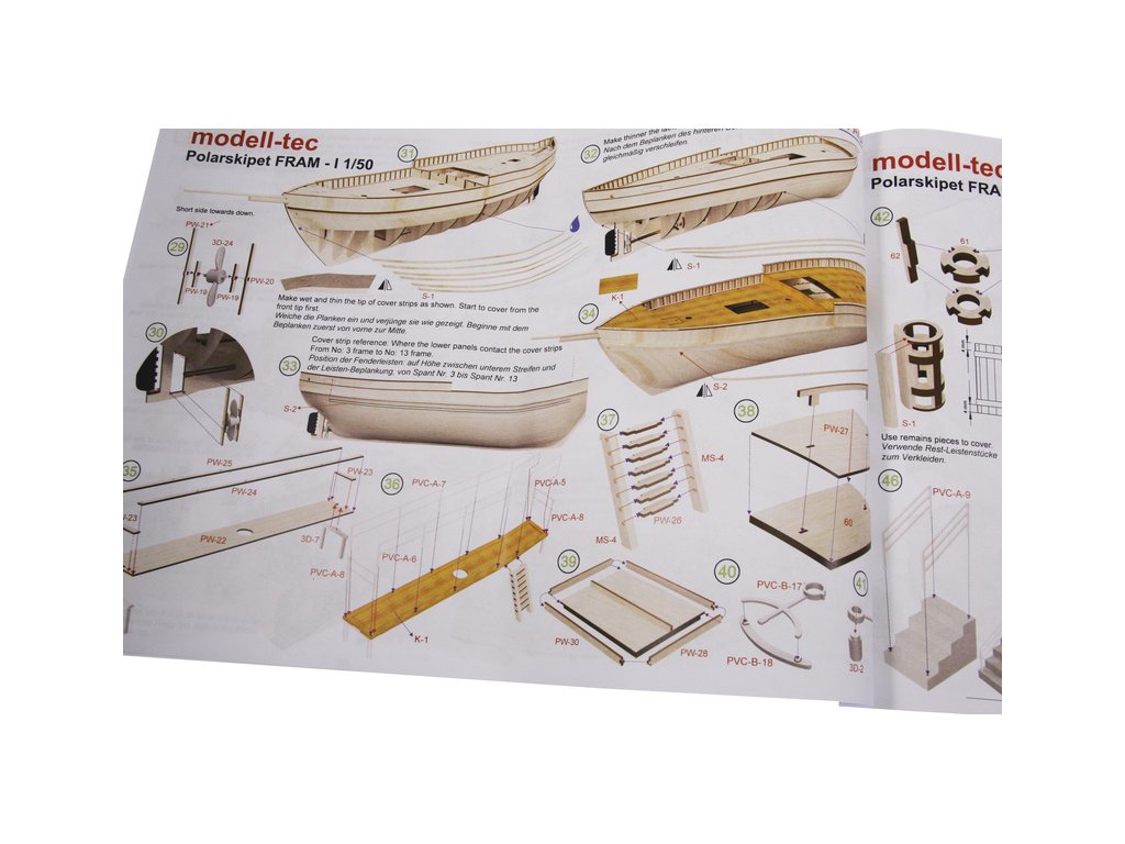 Stavebnice modelu polární lodi Fram I Polarschiff z roku 1893, v měřítku 1:50. Délka modelu lodi je 790mm, stavba převážně ze dřeva s drobnými doplňky, součástí je stavební plán. Loď, se kterou norští polárníci prozkoumávali Arktidu a Antarktidu v letech 1893 až 1912.