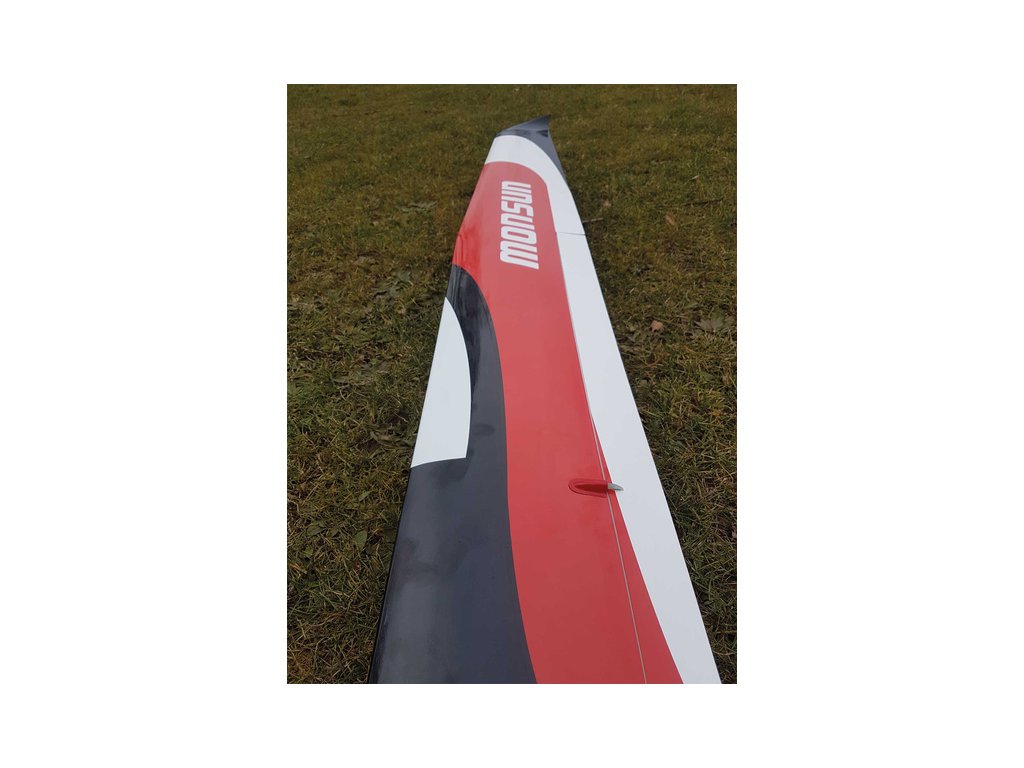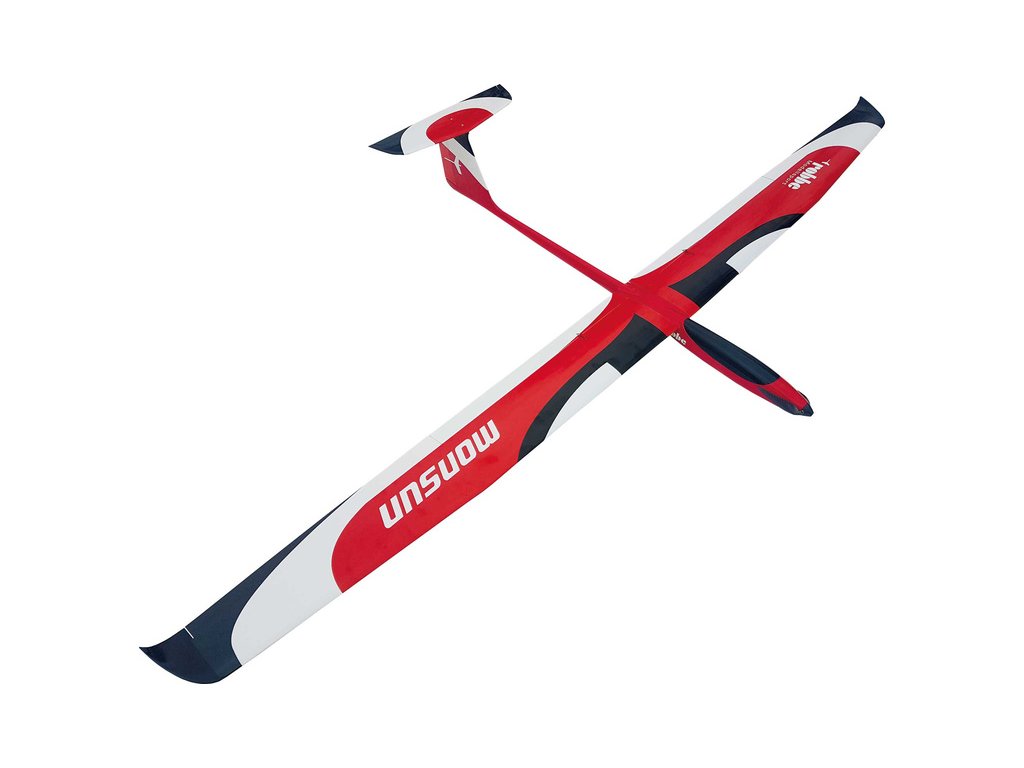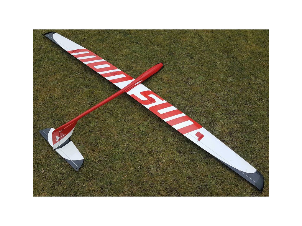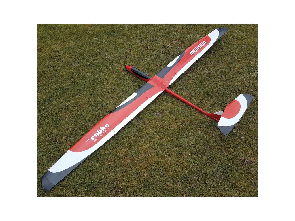 RC model výkonného termického větroně Monsun V2 o rozpětí 3m. Laminátový trup, křídlo má pěnové jádro, potah dýhou Abachi a fólií Oracover, křídlo je potaženo dýhou Abachi a fólií Oracover, průběžný sendvičový nosník (uhlík-borovice-uhlík) pro maximální tuhost v ohybu. Hotové vztlakové klapky. Verze PNP s motorem, servy včetně kabelů, hliníkovým kuželem a sklopnou vrtulí.