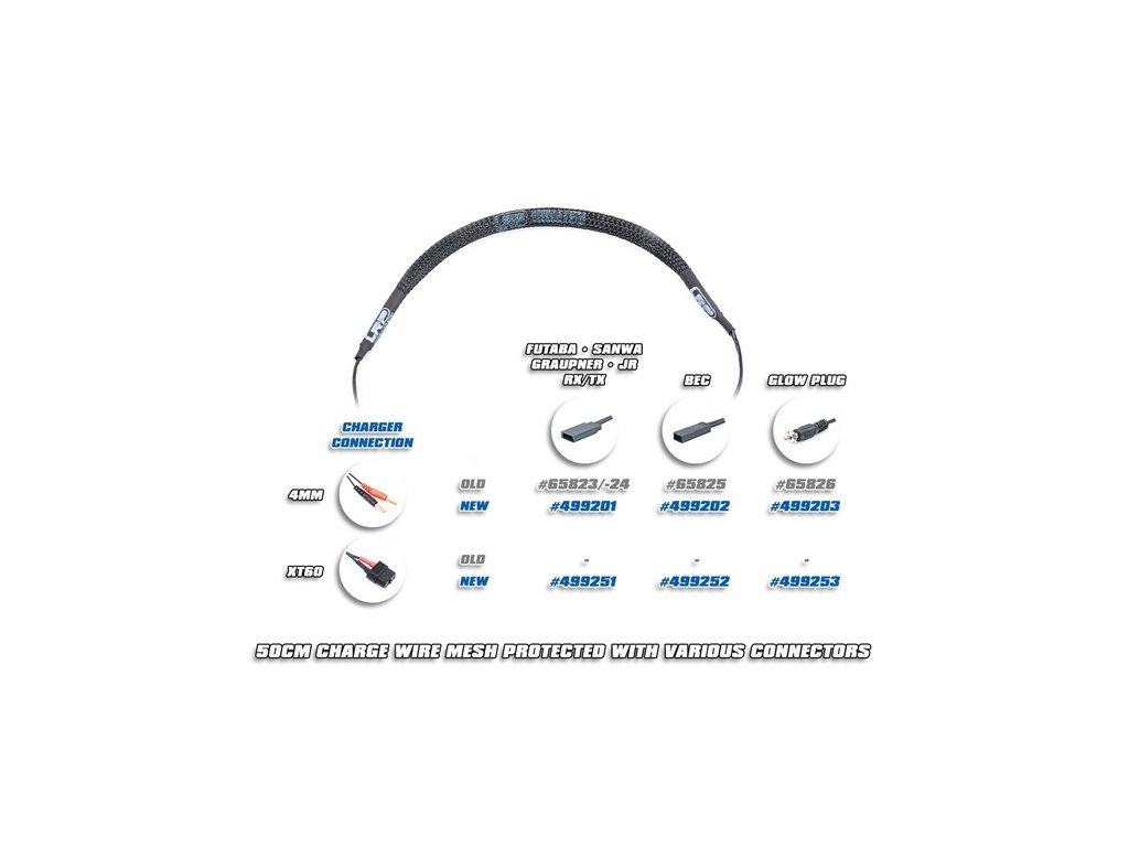 Pro ochranu a spolehlivý provoz se nabíjecí kabely dodávají s ochrannou síťkou a smršťovací bužírkou na obou stranách s potiskem loga LRP.