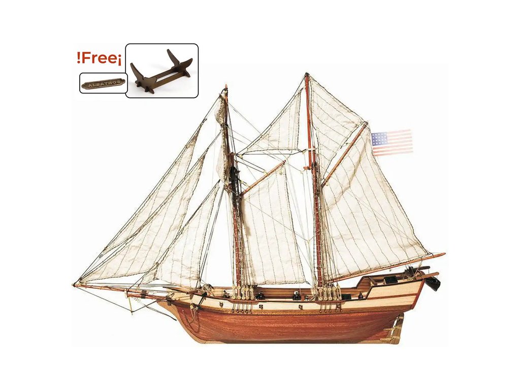 Stavebnice neplovoucího modelu Albatros škuner od značky OCCRE v měřítku 1:100. Elegantní jednodušší model škuneru pro začátečníky z 19. století. Stavba převážně ze dřeva, plošné díly jsou přesně řezané laserem. Plaňkování je dvojité. Pro vystavení lodi poslouží stojánek s kovovou odlévanou plaketou s názvem lodi. Na modelu je množství detailů, odlitky děl a kotev. Včetně provázků pro lanoví jsou obsaženy také ušité plachty což značně zjednodušuje stavbu. Výhodou stavebnice je špičkové balení s dobře ochráněnými díly, obrázkový návod krok po kroku, sada výkresů a videotutoriály.