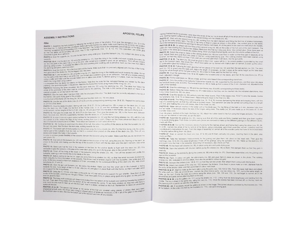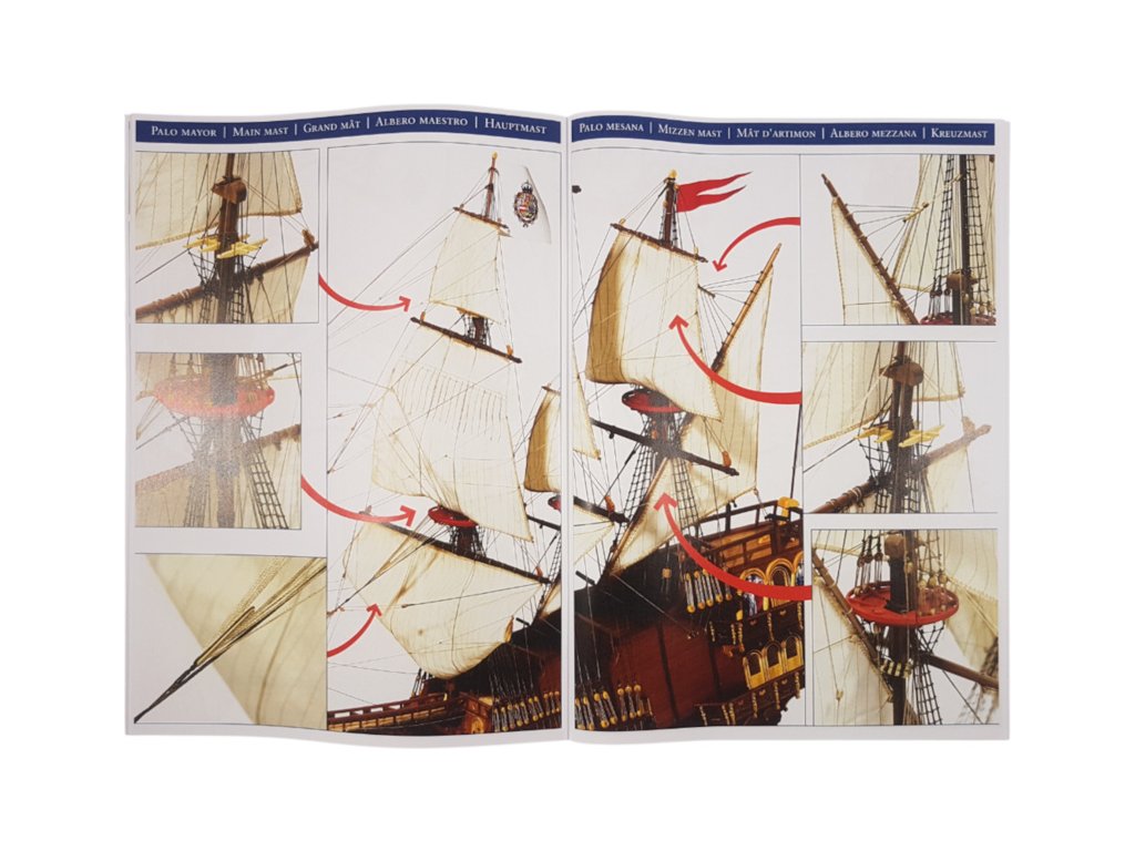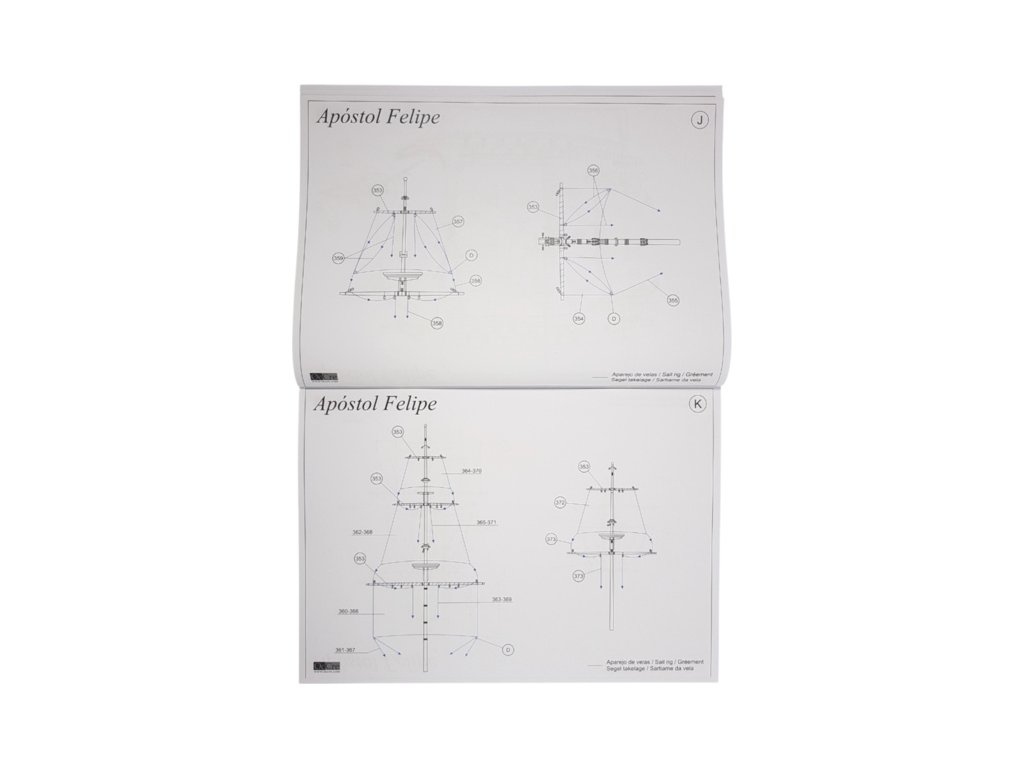 Set obsahuje kompletní sadu výkresové dokumentace modelu v měřítku s obrázky jednotlivých detailů. Na výkrese jsou v měřítku nakresleny montážní sestavy, jejich kompletace a to včetně stěžňů a ráhen a způsob vázání lanoví. Vícejazyčný postup stavby rámcově upravuje logické sestavení jednotlivých komponentů.