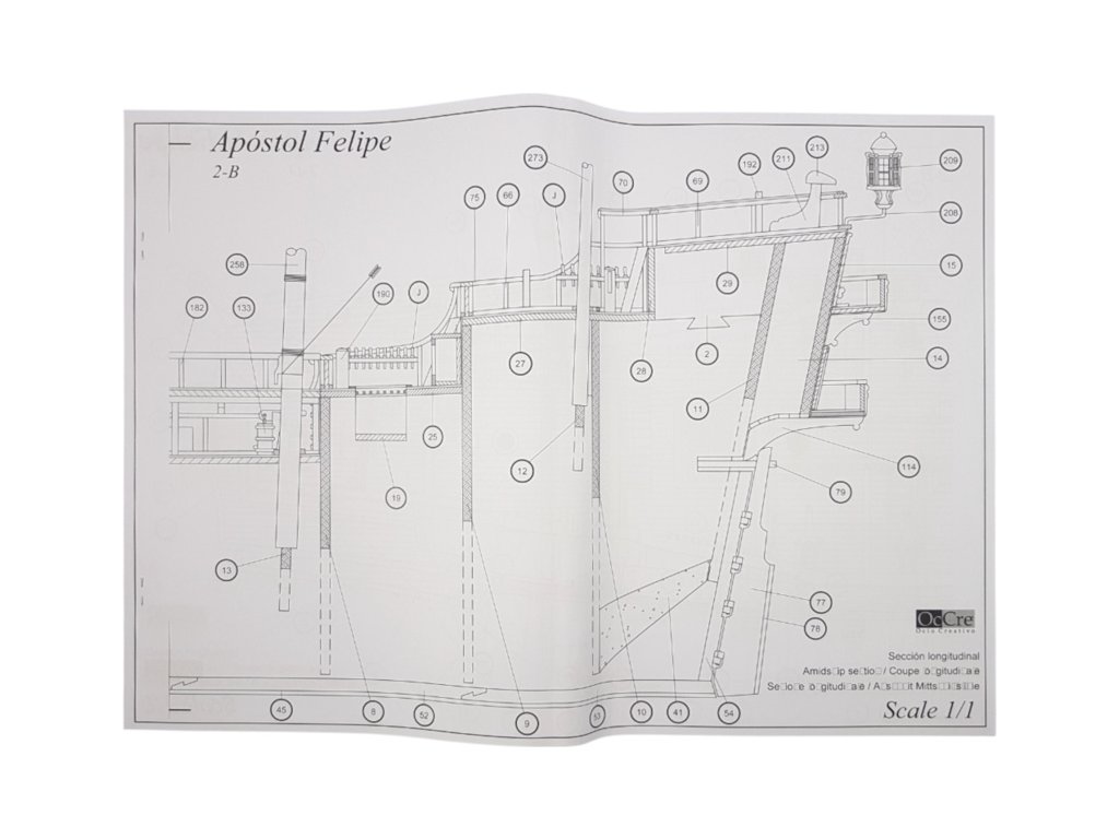 Stavebnice neplovoucího modelu lodi Apostol Felipe od značky OCCRE v měřítku 1:60. Galeona postavená pro Krále Filipa IV., jako model pro mírně pokročilé modeláře. Stavba převážně ze dřeva, plošné díly jsou přesně řezané laserem. Plaňkování je dvojité. Na modelu je velké množství detailů, včetně kovových odlitků jako jsou děla, mřížky oken, nebo galionová figurka lva. Pro vyvázání lanoví jsou v balení různé provázky. Ušité plachty zjednodušují stavbu. Výhodou je špičkové balení, obrázkový návod, sada výkresů.