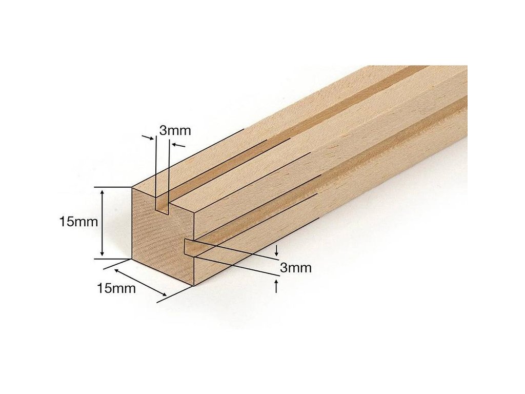 OCCRE Dřevěný profil pro výrobu vitrín 15x15x1000 mm (4)
