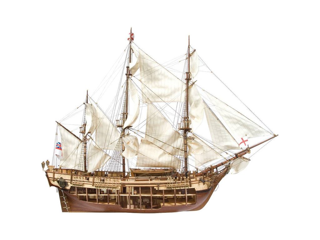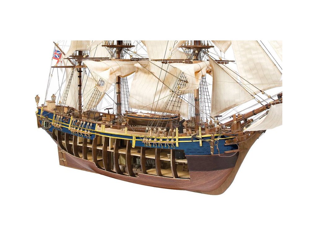 Stavebnice neplovoucího modelu lodi OCCRE HMS Bounty, v měřítku 1:45. V balení jsou díly pro stavbu + plachty - laserem řezané díly, lišty, mosazné fotolepy, lanoví a další. Stavební výkresy a návod.