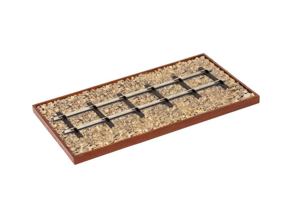 Sada obsahuje díly pro dřevěnou základnu, kameny pro simulaci podkladu kolejí a kolejnice pro vaši lokomotivu.