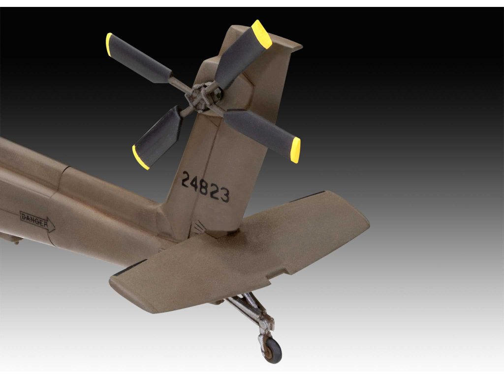 Stavebnice jednoho z nejsilnějších vrtulníků – AH-64A Apache. Tento těžce vyzbrojený bojový vrtulník byl vyvinut speciálně pro frontové operace k útokům proti obrněným silám a poskytování letecké podpory pozemním jednotkám.