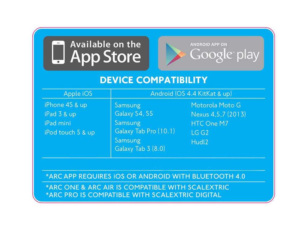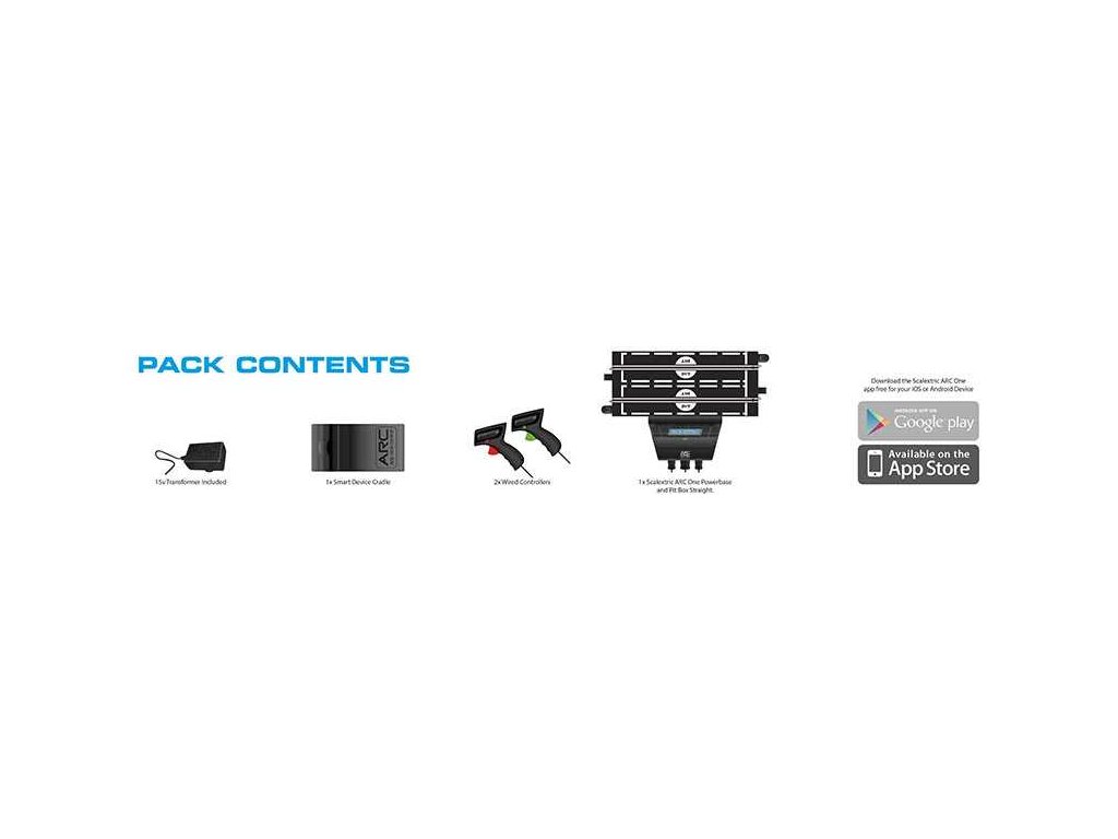 Scalextric ARC; první ovládací systém pro digitální autodráhy, který uživatelům umožňuje nastavovat a řídit závody pomocí chytrých zařízení jako telefon nebo tablet. S novým revolučním napájecím zdrojem ARC ONE od Scalextricu a aplikací ARC mohou uživatelé zažít najednou vzrušení opravdových závodů na dráze a napětí, které dosud znali jenom z počítačových her.