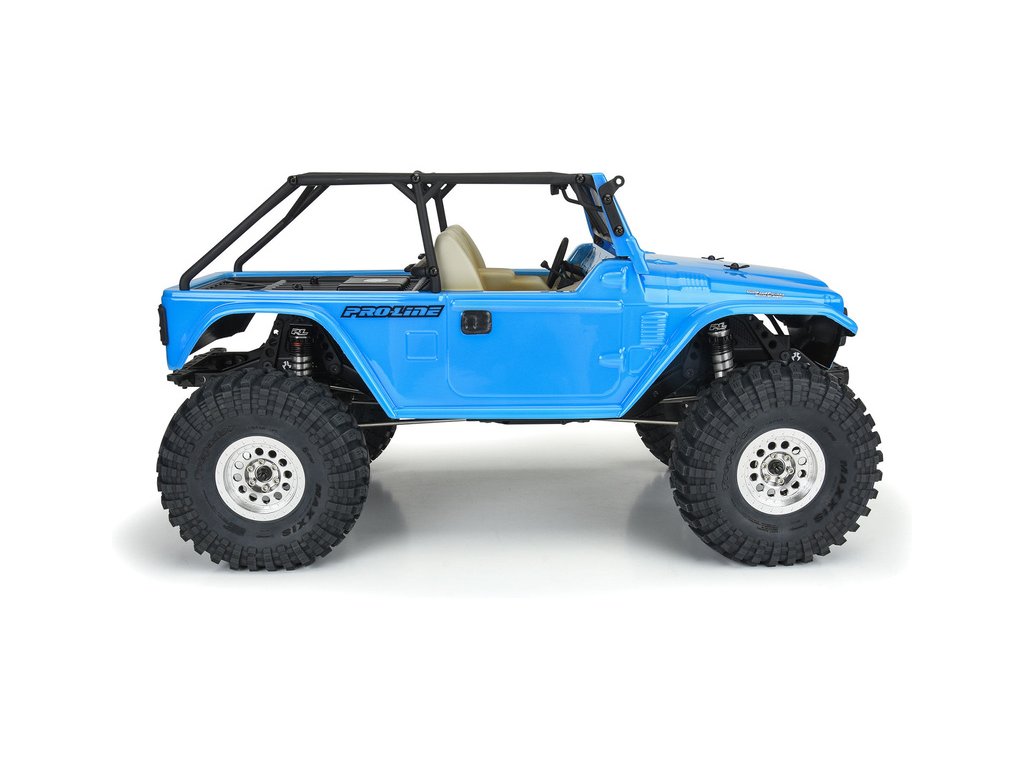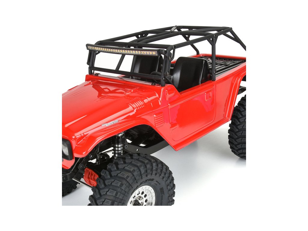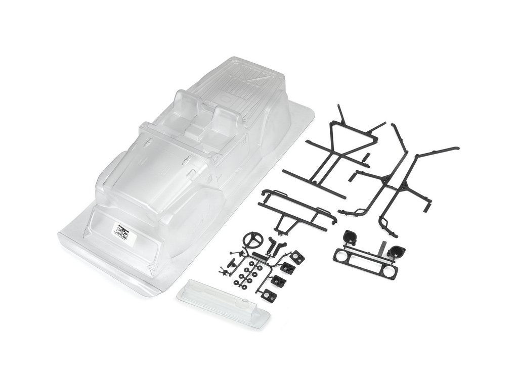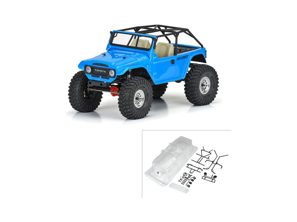 Karoserie Pro-Line 1:10 Toyota Land Cruiser FJ40 s rozvorem 313mm. Vhodné pro expediční a rock crawler RC modely (SCX10). Čirá karoserie z odolného lexanu, vyžaduje barvení. Maska oken a obtiskový arch pro dotvoření vzhledu.