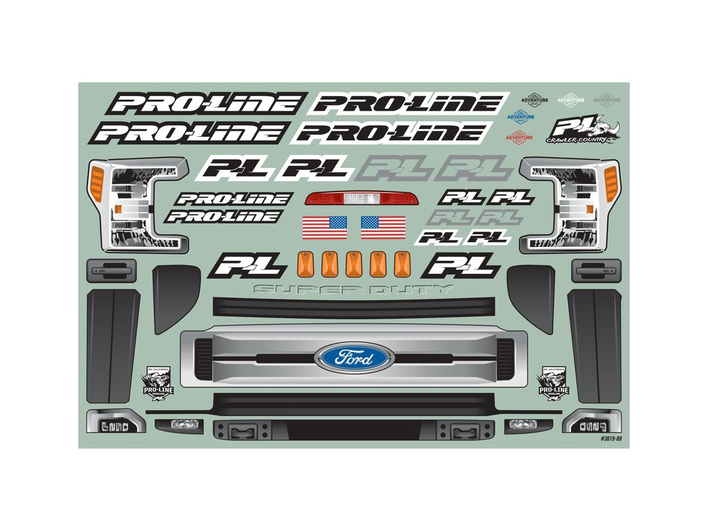 Pro-Line karosérie čirá 2017 Ford F-250 Super Duty, pro expediční RC modely auta crawlery v měřítku 1:10, rozvor 313 mm, délka 311 mm, šířka 203 mm. Vyrobeno z odolného lexanu. Pro-Line s touto karoserií přináší pro Crawlery americký vzhled náklaďáků i na Váš model SCX10™.