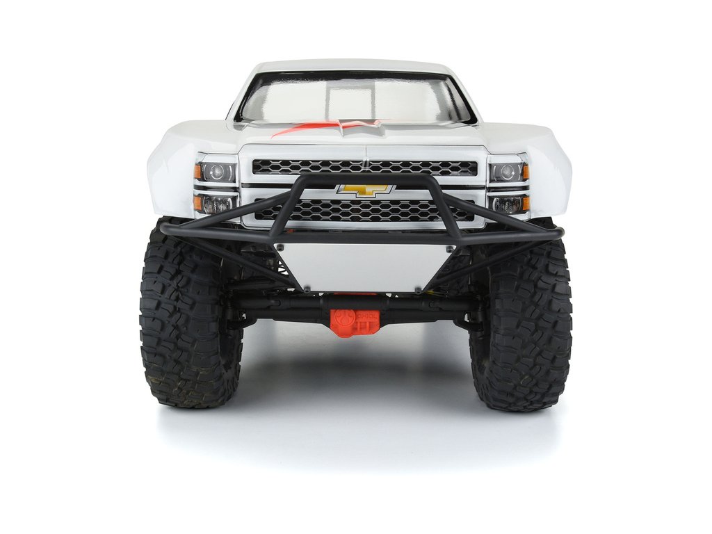 Licencovaná karoserie 2015 Chevy® Silverado™ Pre-Runner pro 12,3" (312 mm) expediční a crawler podvozky. Populární moderní styl Silverado™ se kombinuje s blatníky ve stylu pouštního závodního vozu. Karoserie se vyznačuje prodlouženou kabinou s krátkým lůžkem. Změňte vzhled svého modelu s realistickou nástavbou Chevrolet® Silverado™ 2015 od Pro-Line! Tato karoserie je perfektní například na RC modely aut SCX10-II™ nebo SCX10-III™.