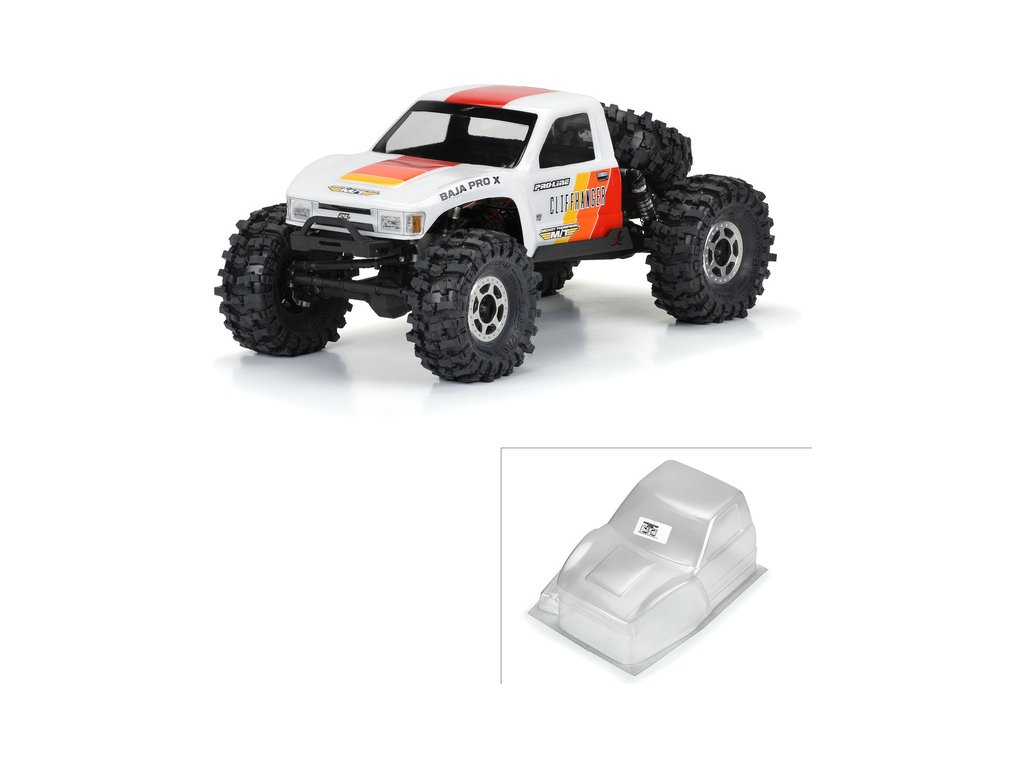 Karoserie Pro-Line, pro všechny fanoušky náklaďáků, nyní můžete získat ve stylu Cliffhanger ve formátu pouze s kabinou. Tento design ve stylu JDM z 80. let má akční dravou přední část závodního stylu a je připraven na monráž vašeho valníku, který si můžete doplnit podle vaší fantazie a možností. Cliffhanger je vyroben z jednoho kusu čirého polykarbonátu a obsahuje polykarbonátové světlomety. Obsahuje obtiskový arch, masky na okna a přestřikovací fólii barvy a poté odlupování. Nezůstávejte pozadu na skalách, pořiďte si své vlastní karosérii Cliffhanger ještě dnes!