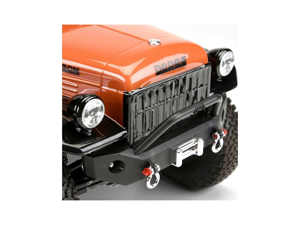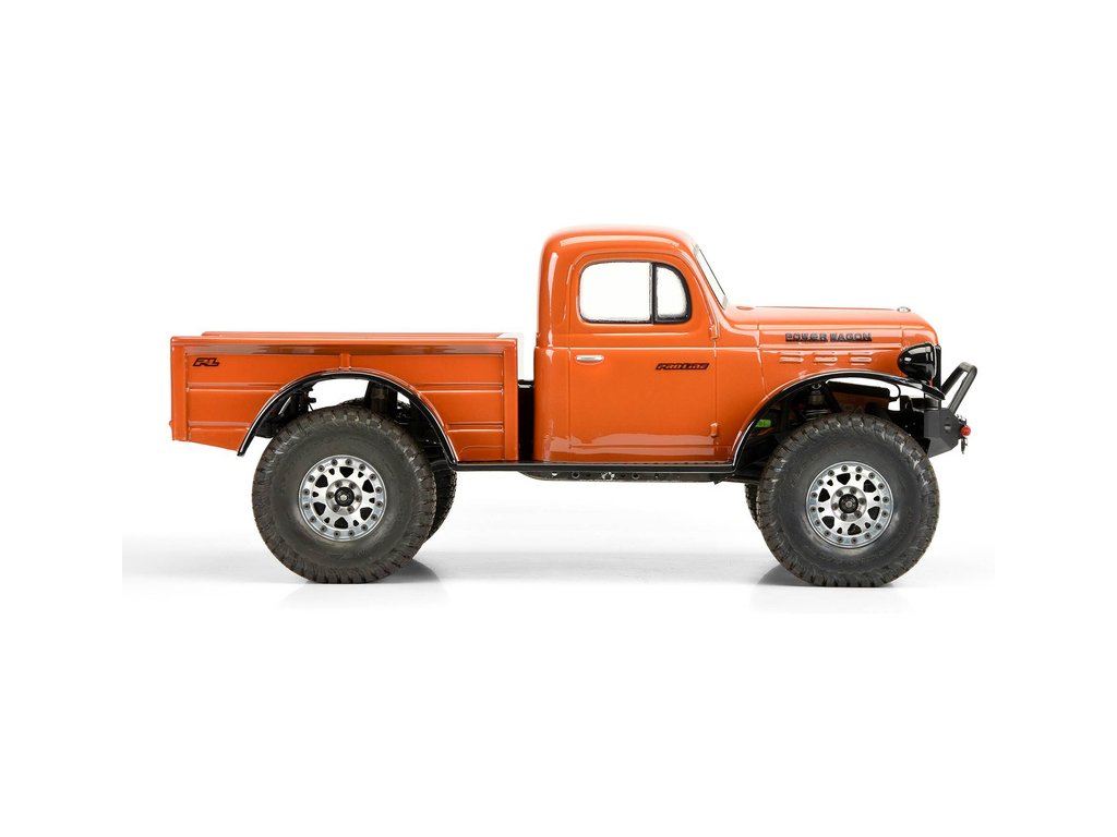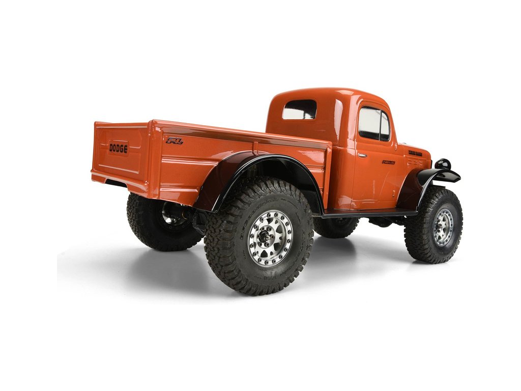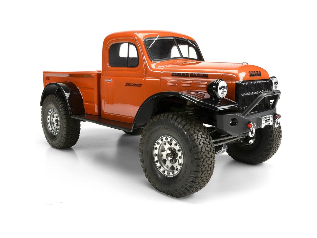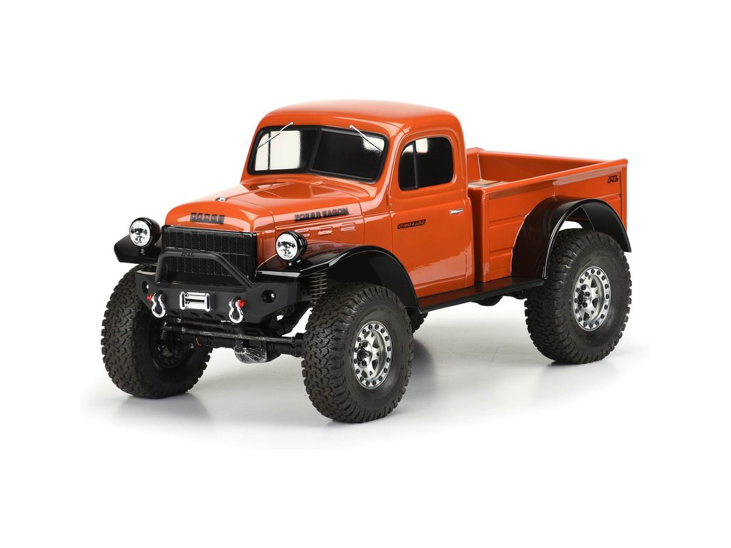 Parádní karosérie historického klasického náklaďáku Dodge Power Wagon z roku 1946. Realistická detailní 2-dílná karosérie s budkou, velkými blatníky chladičem a velkým valníkem má samostatné kulaté světlomety navržené tak, aby umožňovaly doplnit osvětlení z LED pro maketový vzhled.