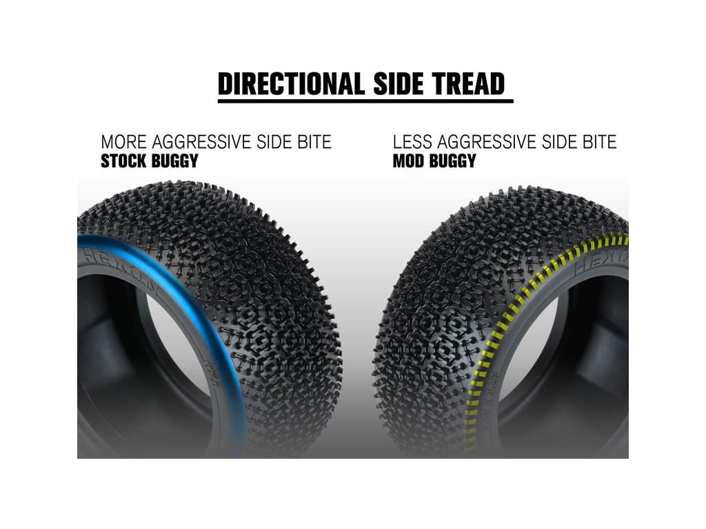 Pneumatiky Pro-line 2.2" Hexon CR3 Carpet zadní (2 ks), pro RC modely aut 1:10 Buggy pro závody na koberci. Rozměry ⌀83x40mm. Směs střední CR3 (Medium Carpet).