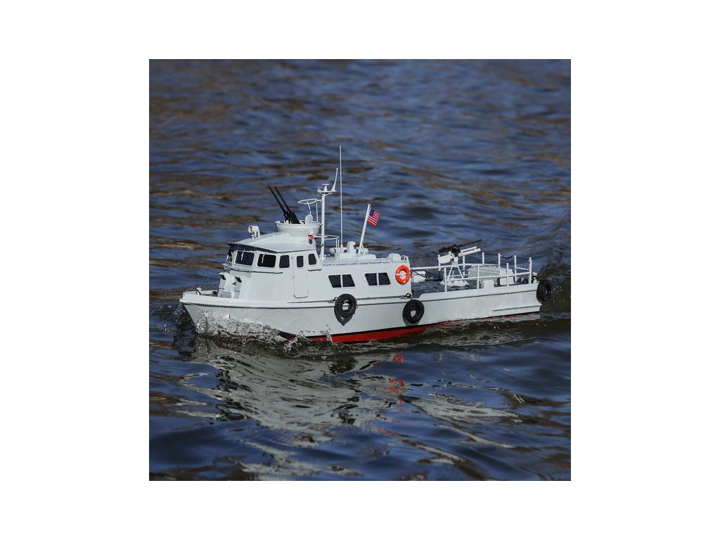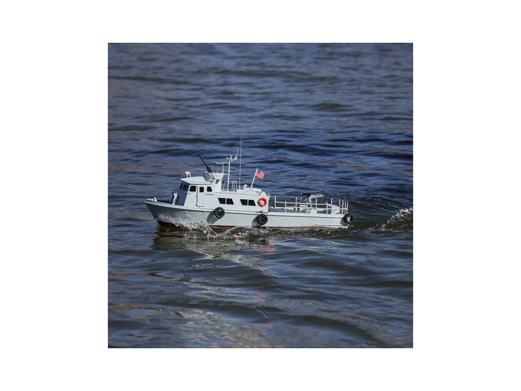 Proboat PCF Mark I 24” Swift Patrol Craft 1:25 RTR je RC model vojenské hlídkové lodi s trupem z ABS o délce 610 mm, s vojenskou kamufláží. Model je hotový, vybaven je řadou maketových prvků, jako dělo na přídi, kulomety a kanón na zádi, záchranné kruhy, dokovací pneumatiky, světelný modul, antény, řetězy, vlajka atd. Model pohání dva protiběžné motory řady 390, regulátor 40 A 2v1, RC souprava je Spektrum SLT3. Stačí doplnit pohonnou LiPol baterii 2S - 3S 2200 mAh s konektorem IC3 / EC3.