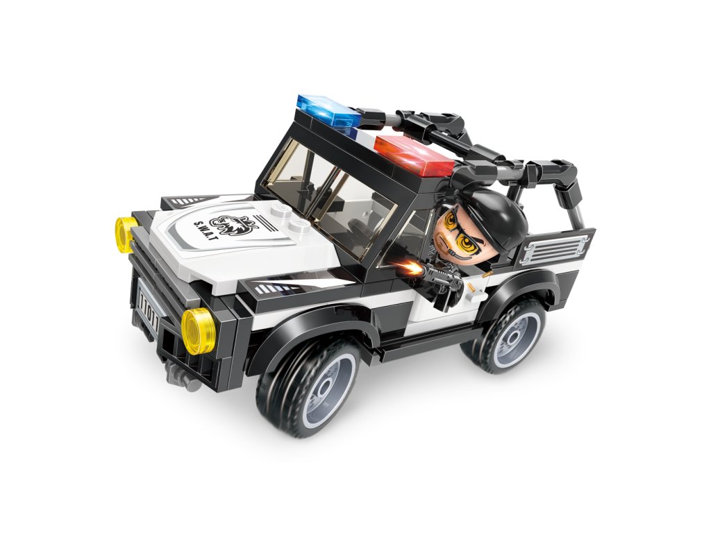 Zatočte s chaosem a podvodníky, vylepšená policejní auta odvedou vždy svou práci! Vysoce variabilní stavebnice Qman z pestrobarevných plastových kostiček lze kombinovat s podobnými stavebnicemi mnoha dalších významných výrobců. Vyrobeno z kvalitního, nezávadného a odolného, ABS plastu. Baleno v pestře potištěné papírové krabičce.