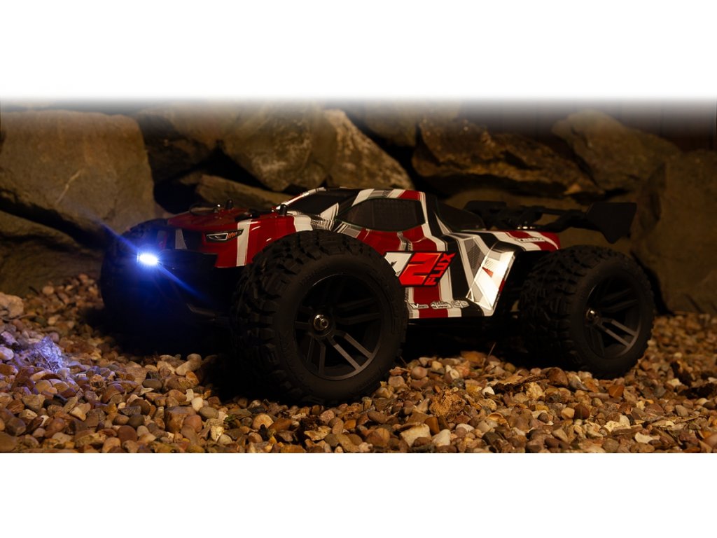 - Přední a zadní LED světla s funkčním brzdovým světlem a ovládáním z vysílače
