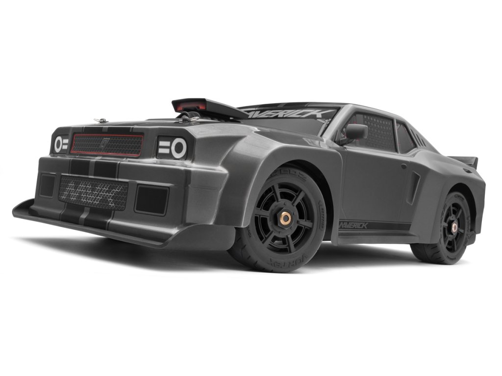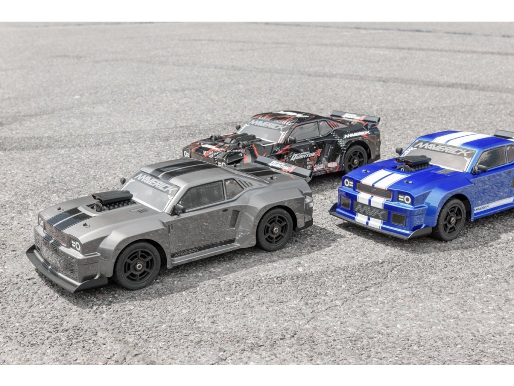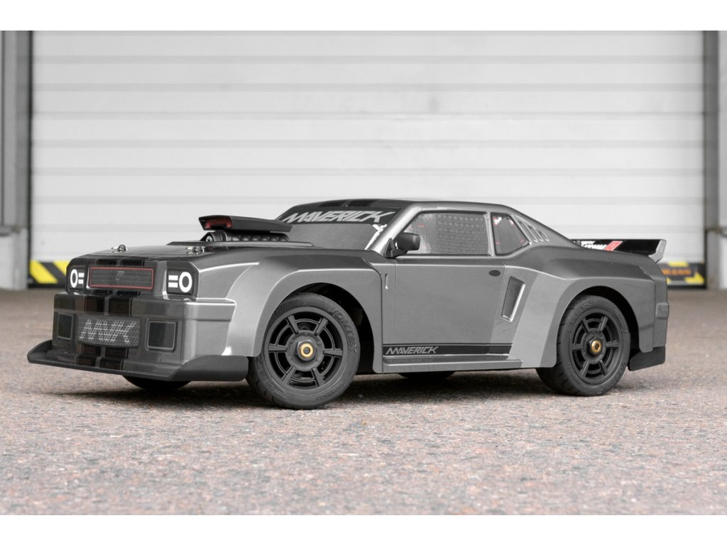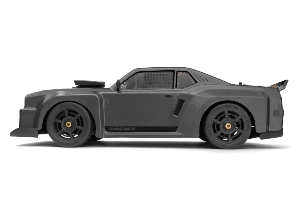 QuantumR Muscle Car pokračuje v trendu Maverick. Snaží se prorazit nové hranice, a to se týká převážně specifikací a výkonu. Je postaven na robustním podvozku Quantum+ s novým, nízko posazeným zavěšením optimalizovaným pro jízdu na silnici. Je obut do nízkoprofilových pneumatik Tredz Vortex, a pohání ho úžasný brushless pohon HPI 4S FLUX...